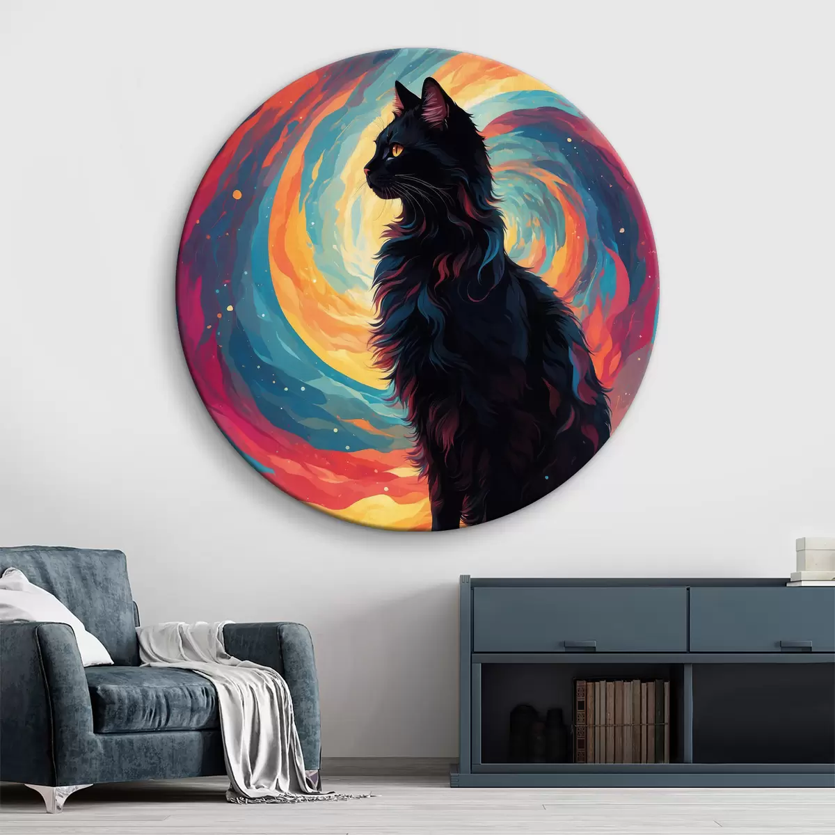 Кругла картина Чорний кіт на тлі простору Nr r39370