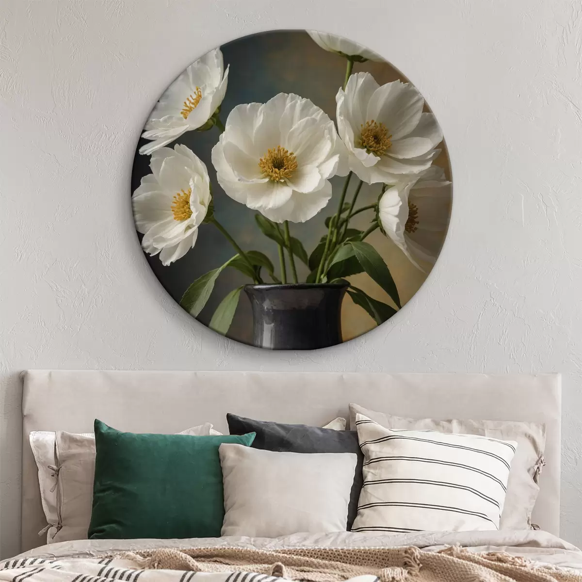 Кругла картина Білі квіти в сірій вазі Nr r39380