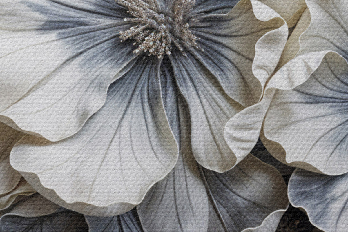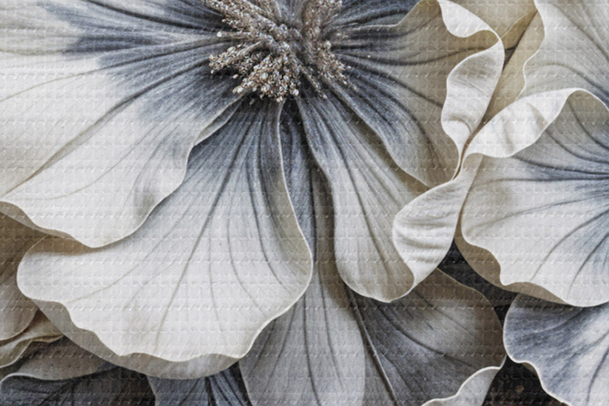 Кругла картина Велика сіро-біла картина маслом квітів із складними деталями на м’якому розмитому фоні r39385