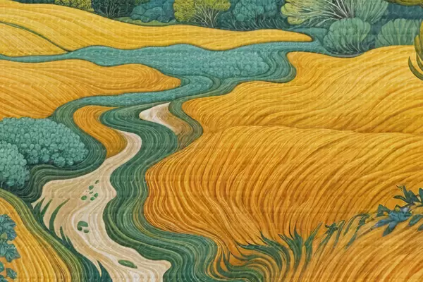 Кругла картина Барвистий пейзаж із звивистою ґрунтовою доріжкою, що веде через поле в стилі Ван Гога r39400