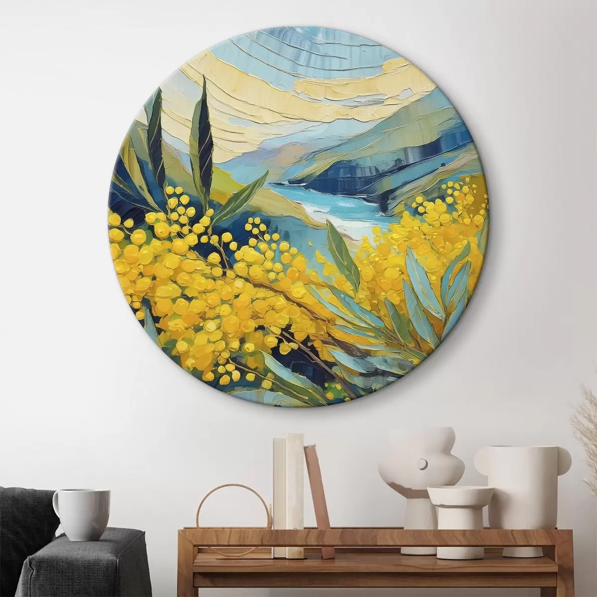Кругла картина Природний пейзаж, літо, жовті квіти, олійний живопис, яскраві мазки Nr r39418
