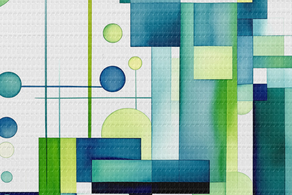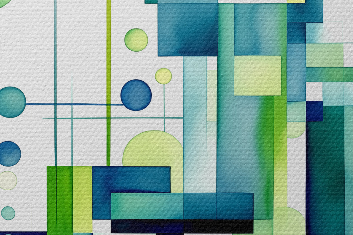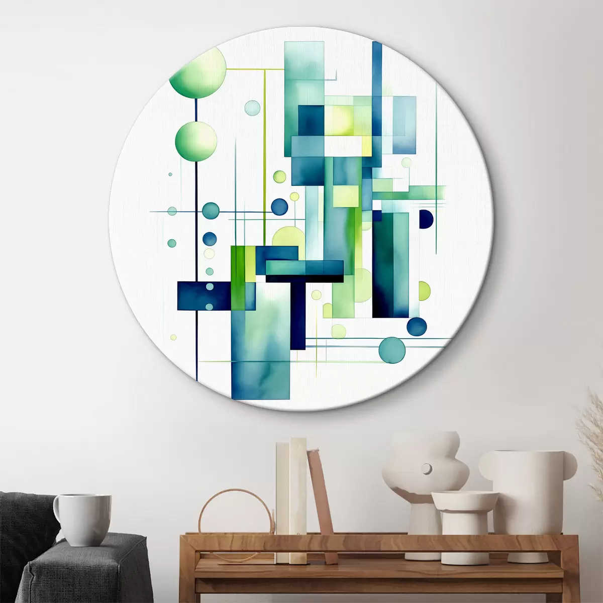 Кругла картина Абстрактні геометричні аквареллю композиції, стиль Бохо, зелений і синій колір Nr r39430