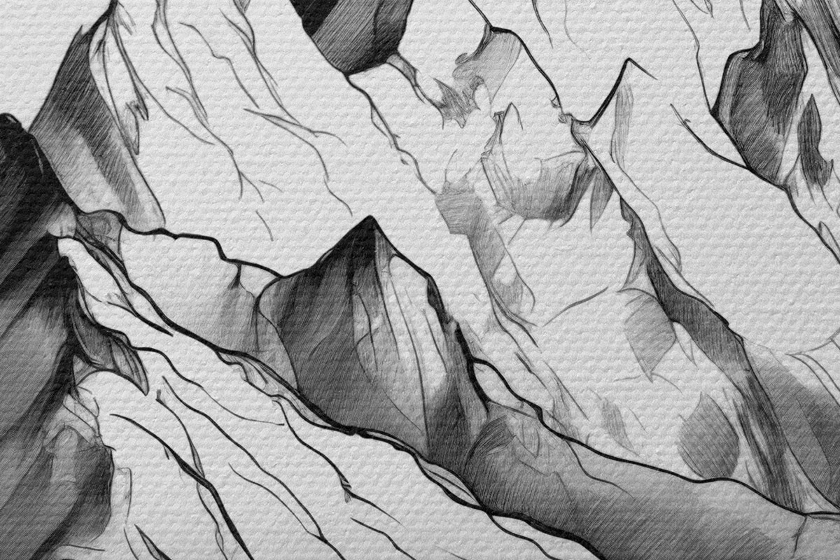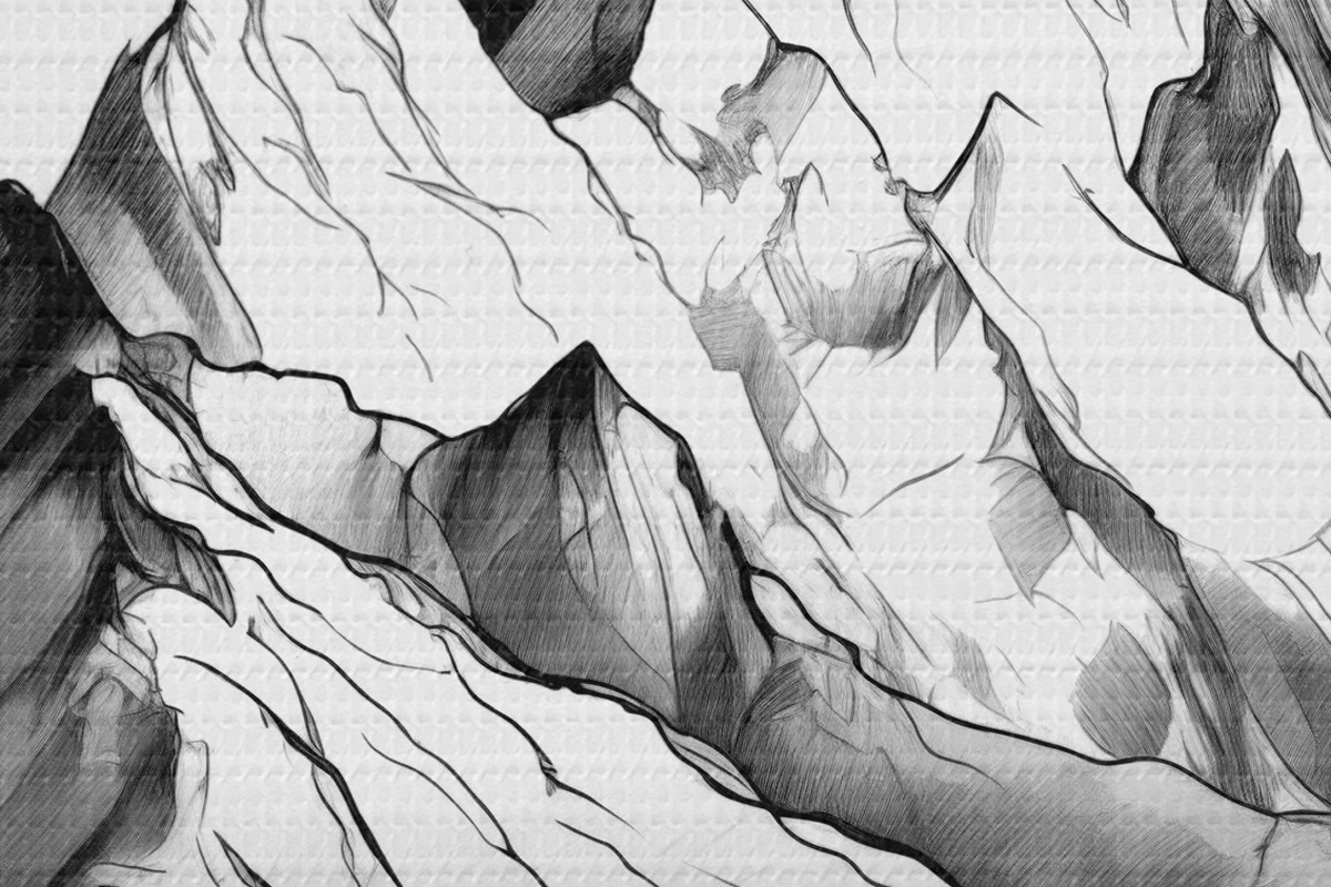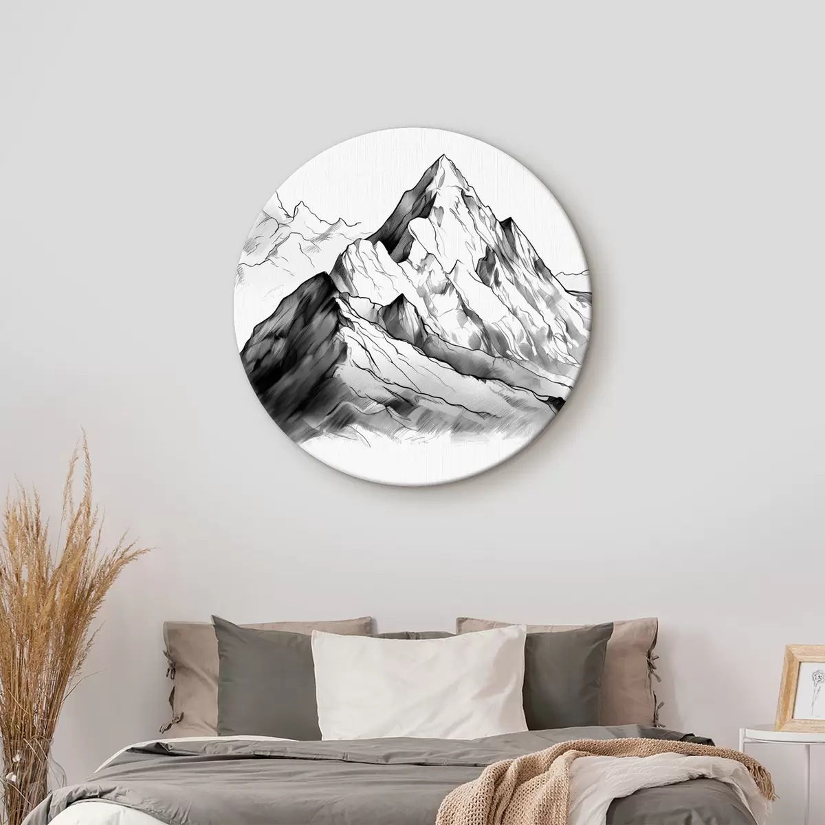 Кругла картина Гірські вершини і скелі монохромний штриховий малюнок r39434