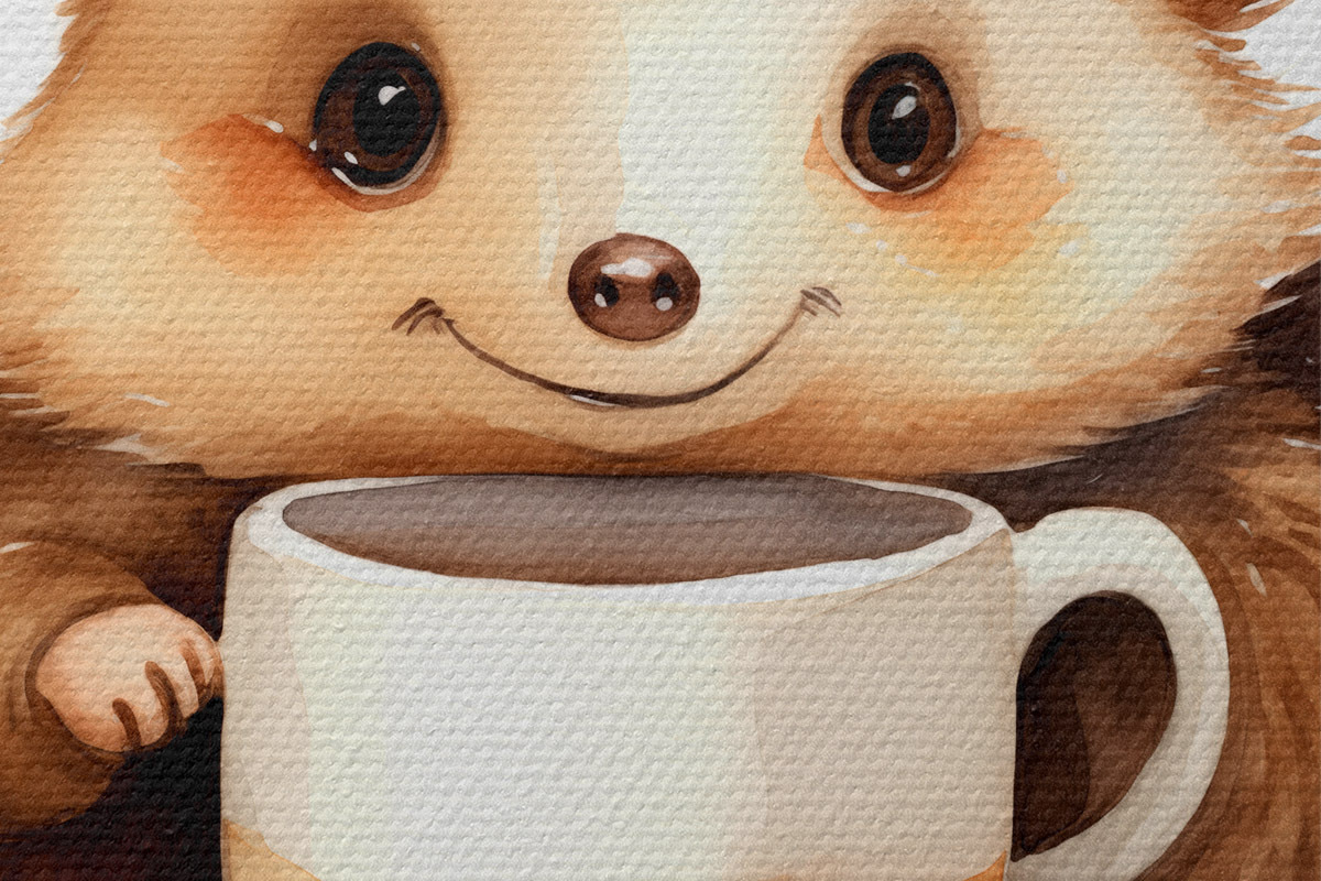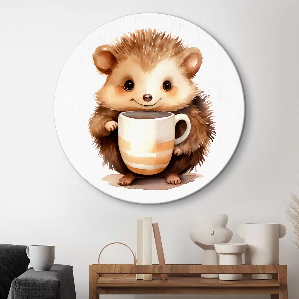 Кругла картина Їжак тримає білу чашку в лапах аквареллю дитячої ілюстрації r39440
