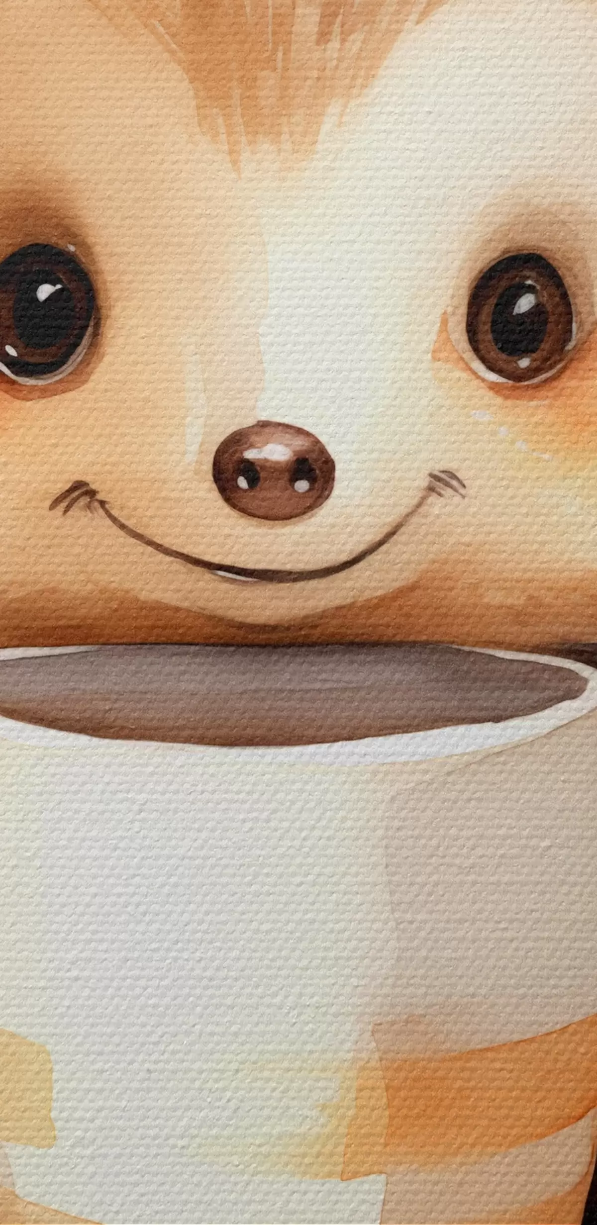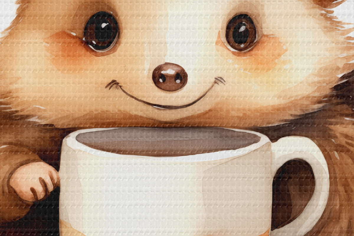 Кругла картина Їжак тримає білу чашку в лапах аквареллю дитячої ілюстрації Nr r39440