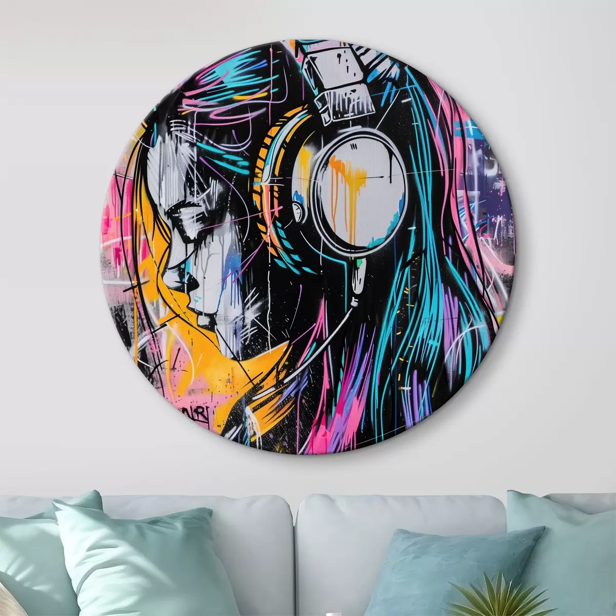 Кругла картина Жінка з навушниками в стилі графіті r39443