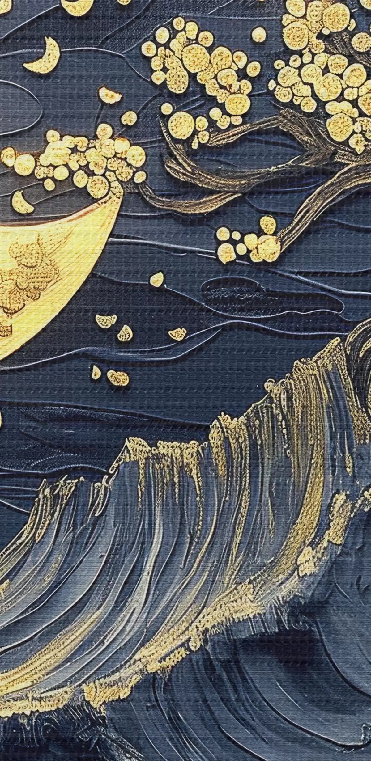 Кругла картина Акриловий живопис: романтичні морські пейзажі з опалим листям і відблисками місячного світла r39449