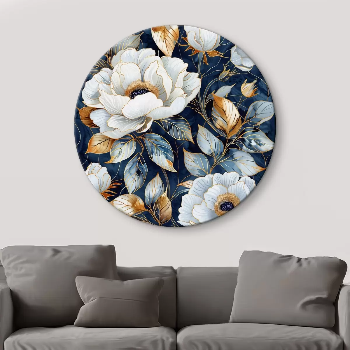 Кругла картина Білі півонії та троянди, підкреслені контуром і складними квітковими візерунками на задньому плані Nr r39458