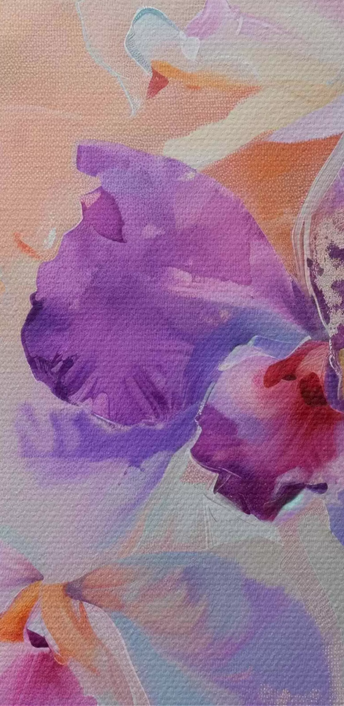 Кругла картина Імпресіоністичний орхідейний живопис, світлі пастельні кольори, напівабстрактний ботанічний принт, нейтральне тло r39463