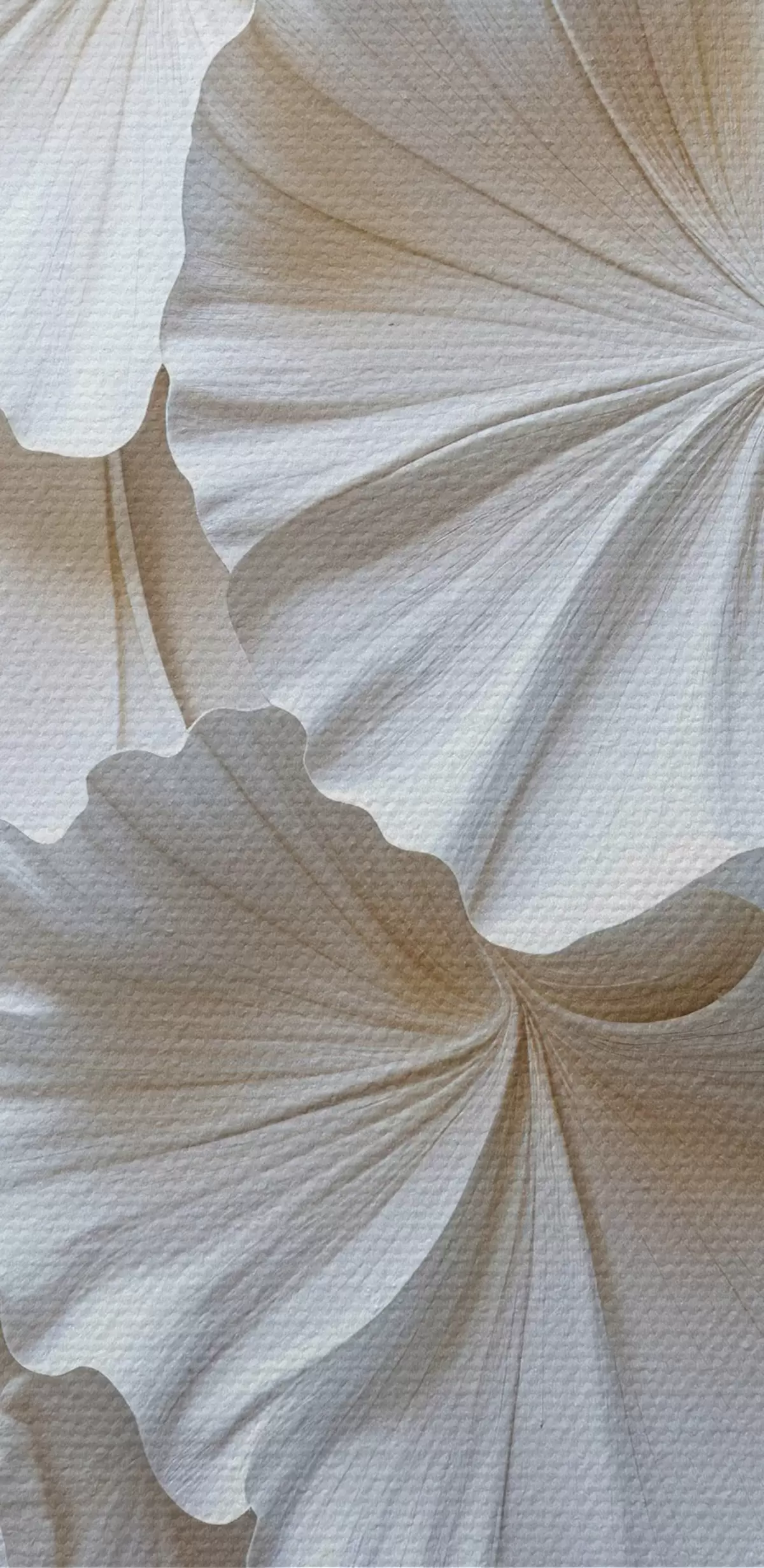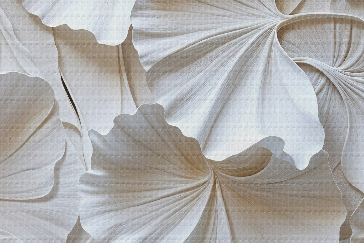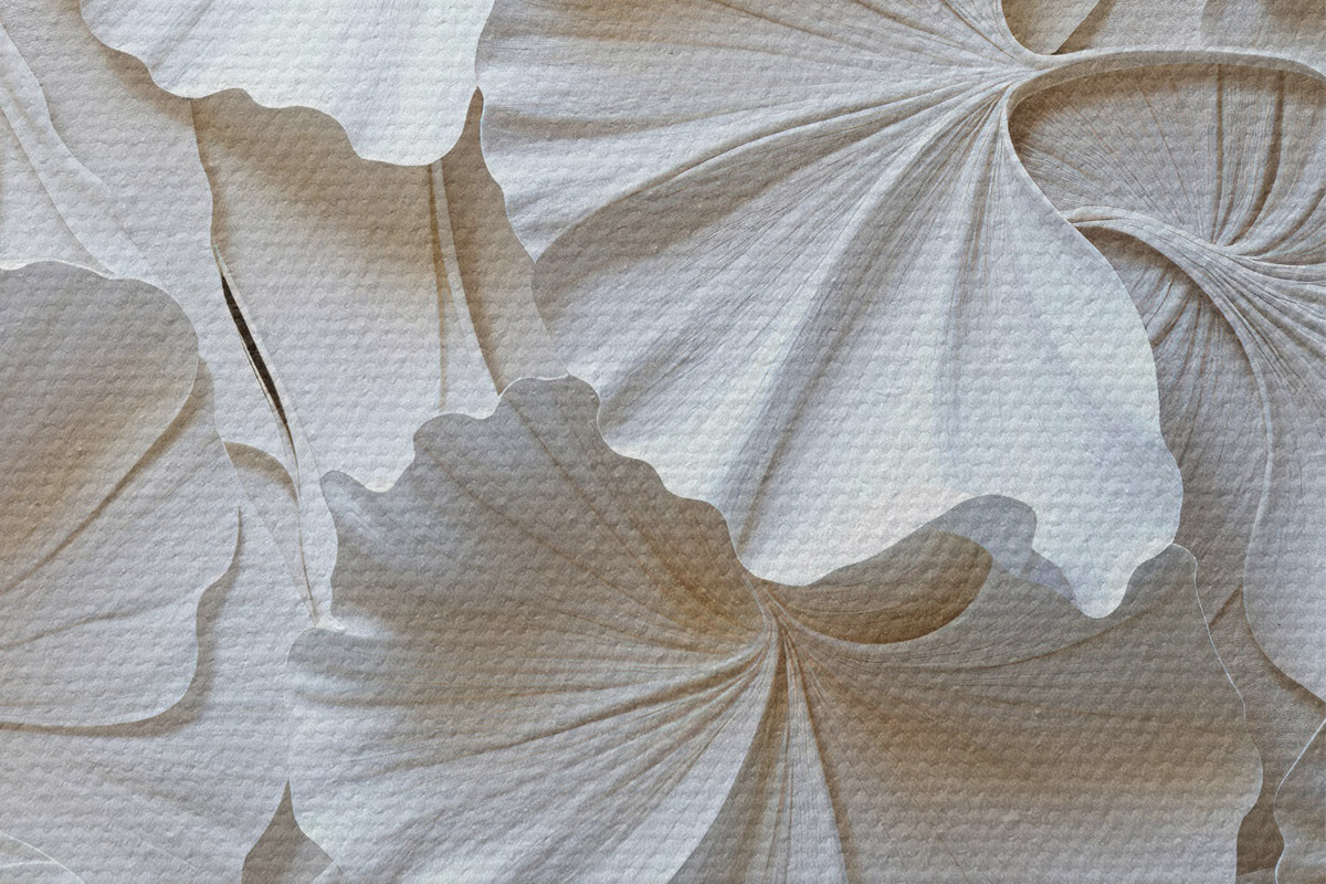 Кругла картина Ніжні білі квіти розташовані природним, органічним візерунком на світлому фоні r39510
