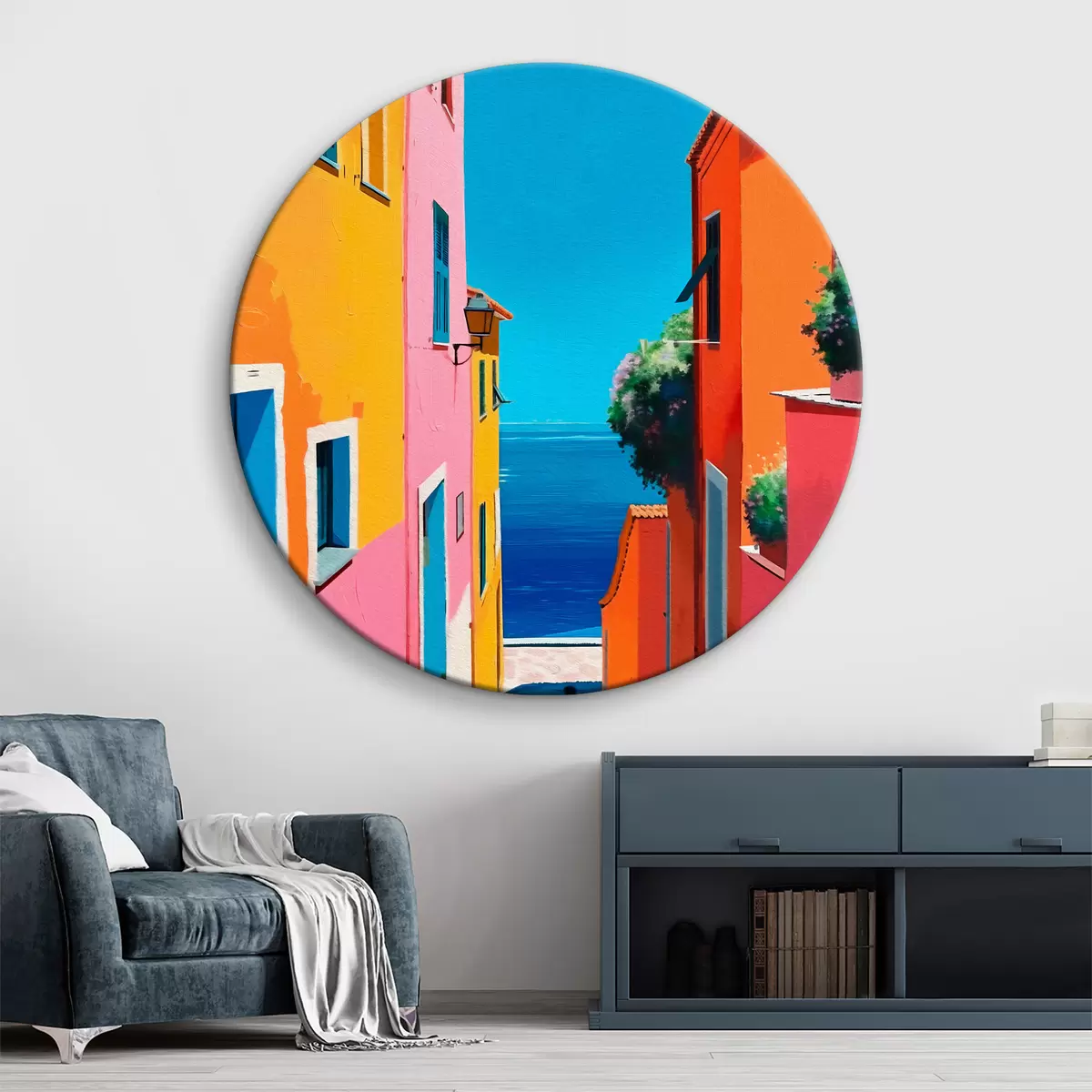 Кругла картина Вид на море та світла вулиця Nr r39582