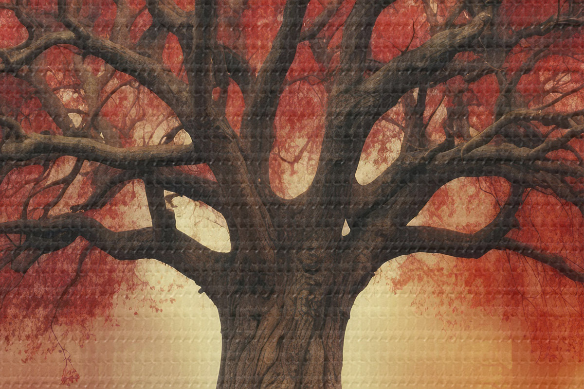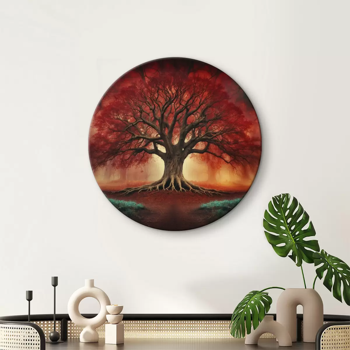 Кругла картина Вкорінене червоне дерево в лісі r39602