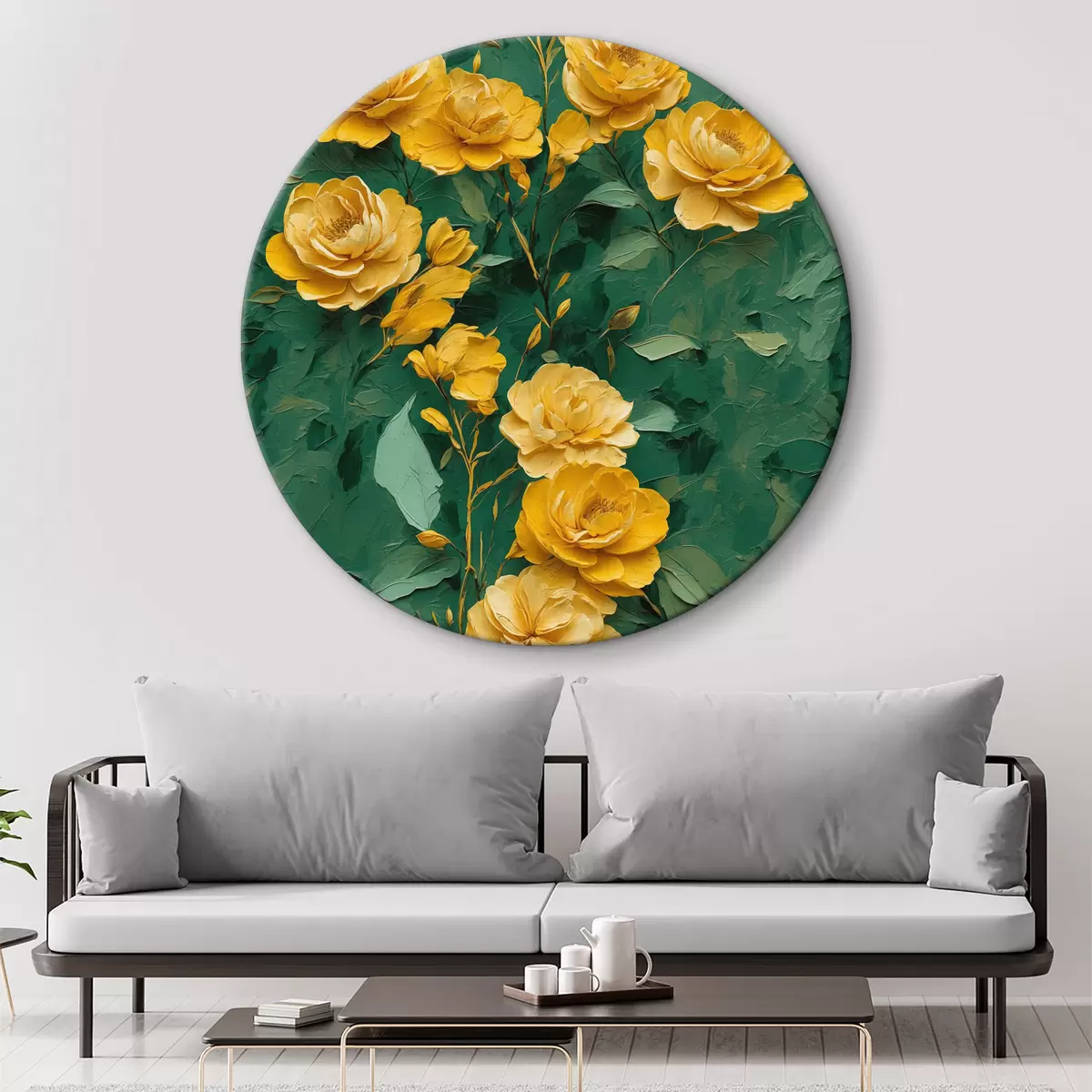 Кругла картина Жовті кольори на зеленому тлі r39613