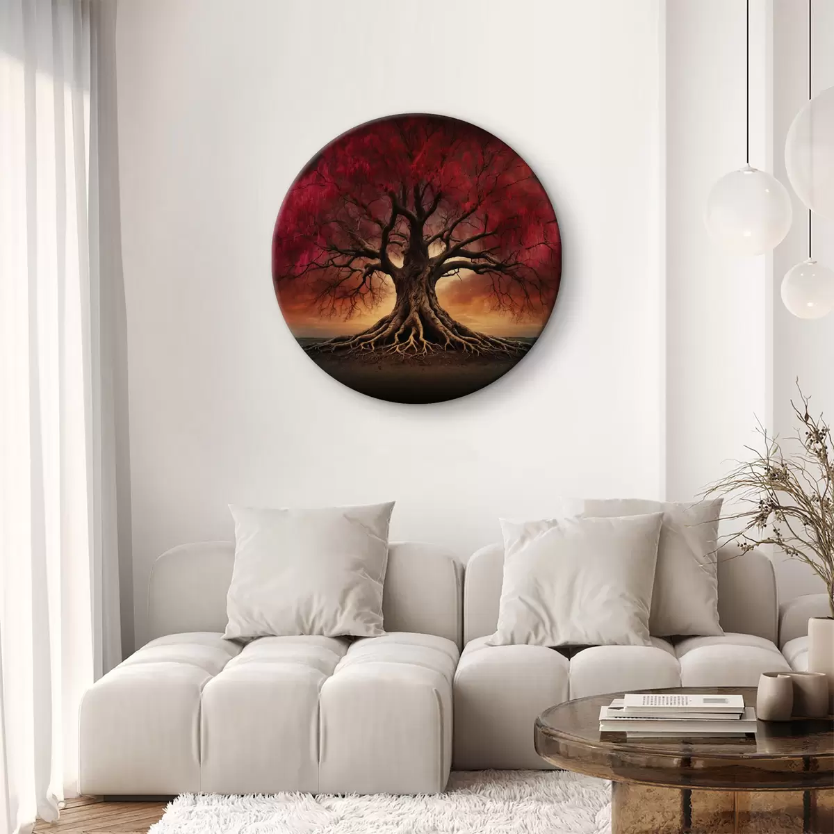 Кругла картина Вкорінене дерево посеред порожнього поля r39614