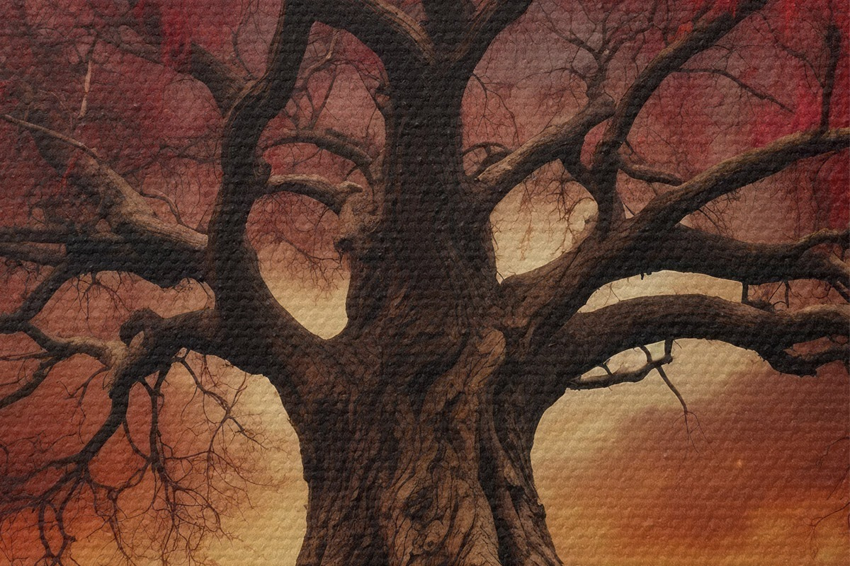 Кругла картина Вкорінене дерево посеред порожнього поля Nr r39614