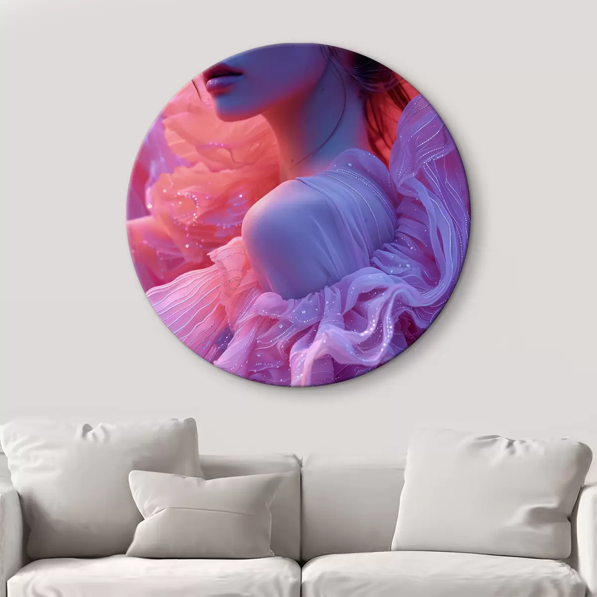 Кругла картина Дівчина в сукні рожево-фіолетових відтінків" Nr r39639