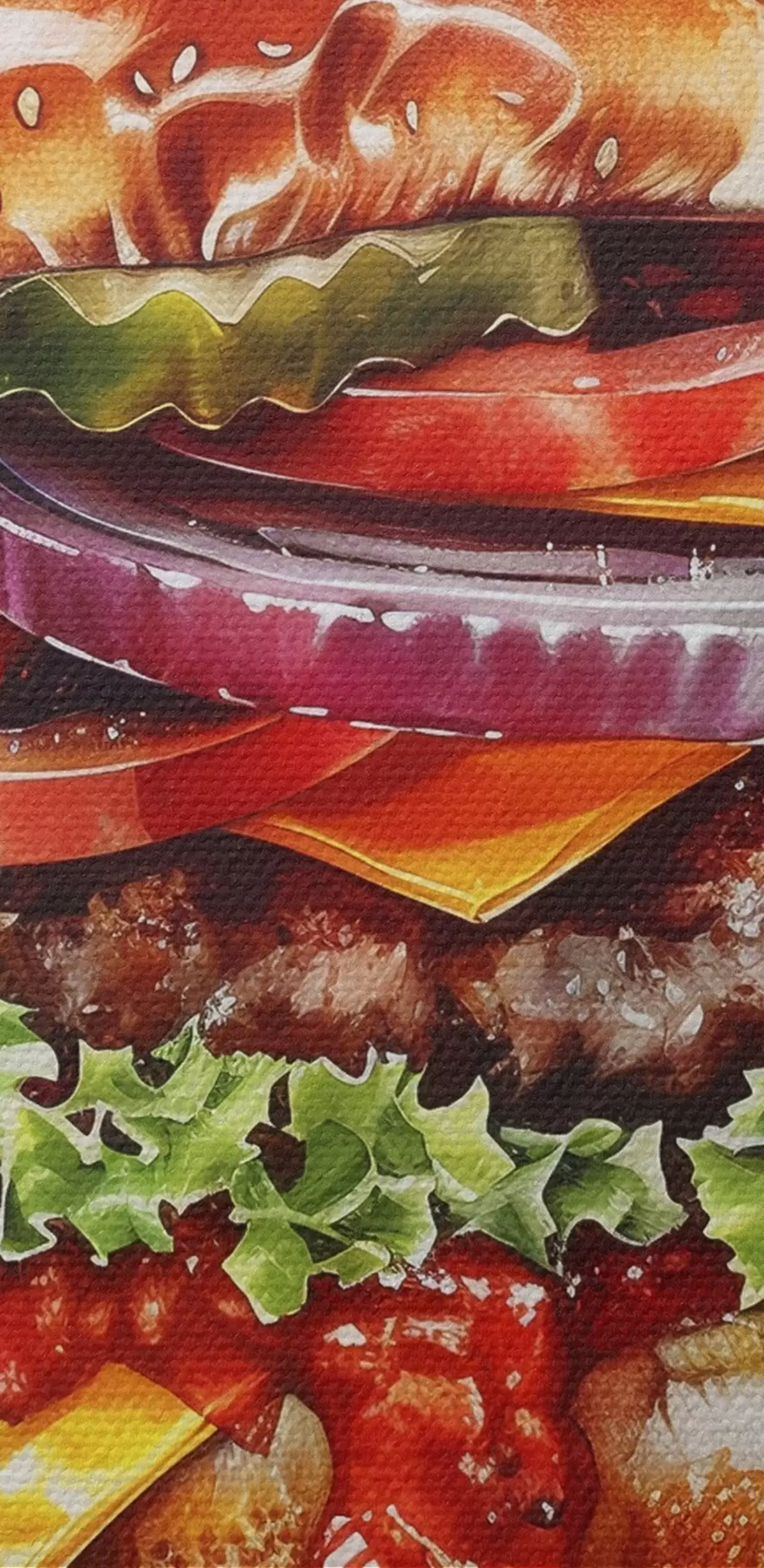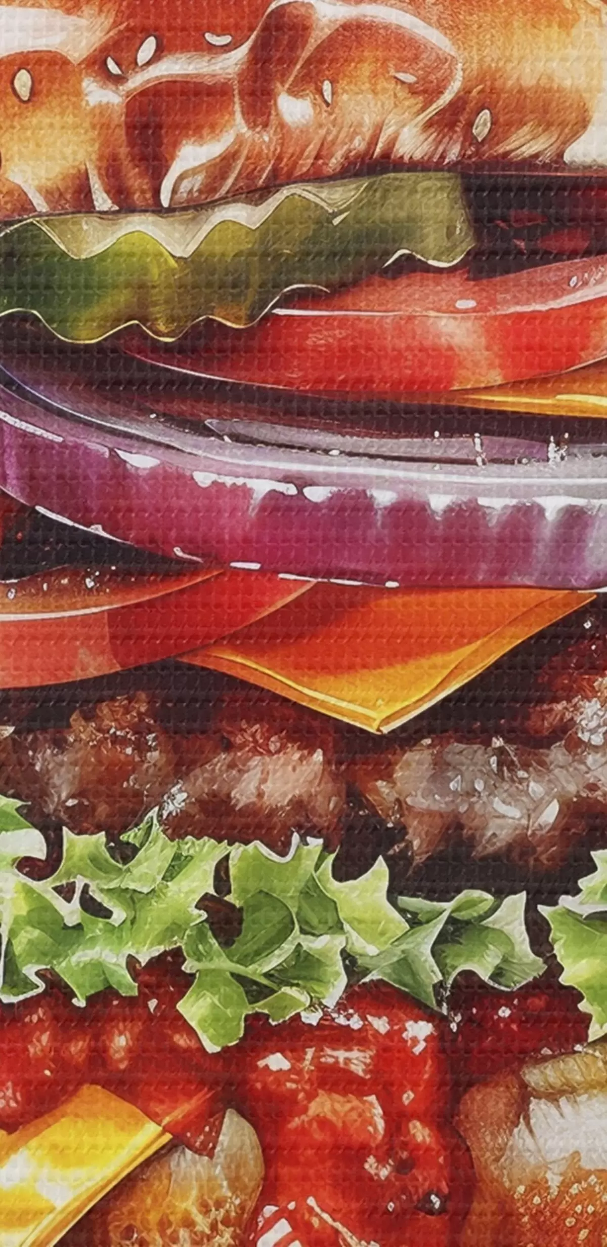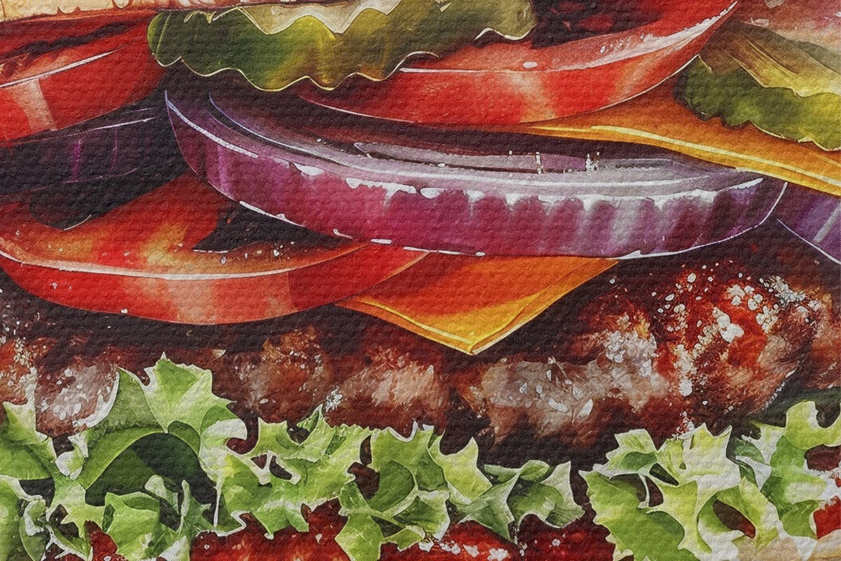 Кругла картина Смачний гамбургер з м'ясом, квітковим, аквареллю, харчовим мистецтвом Nr r39699
