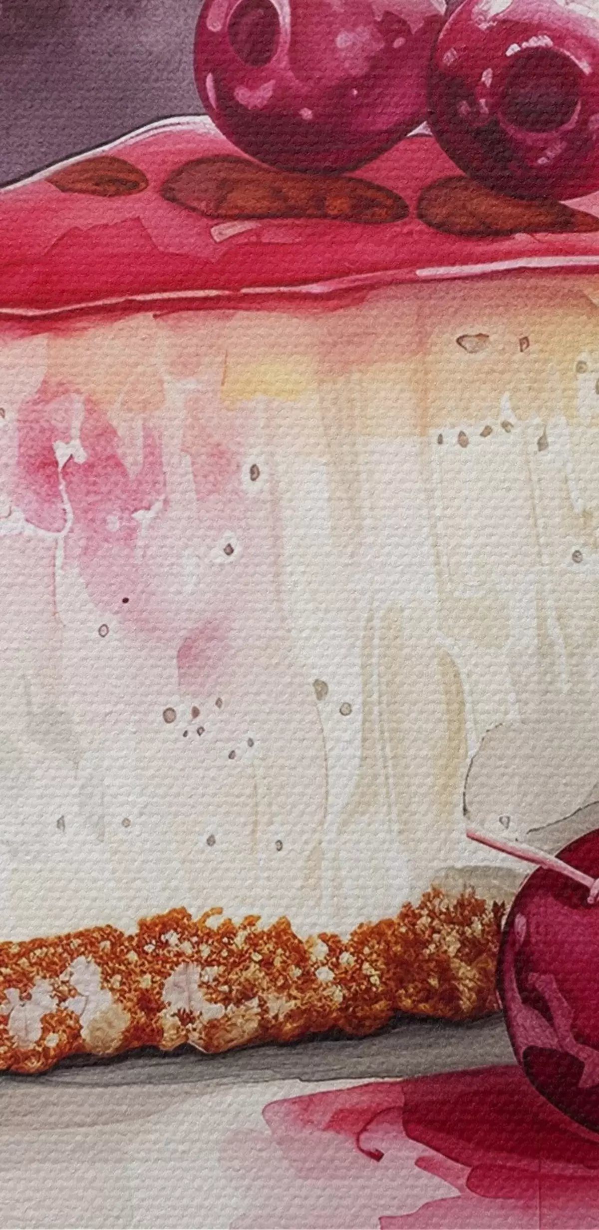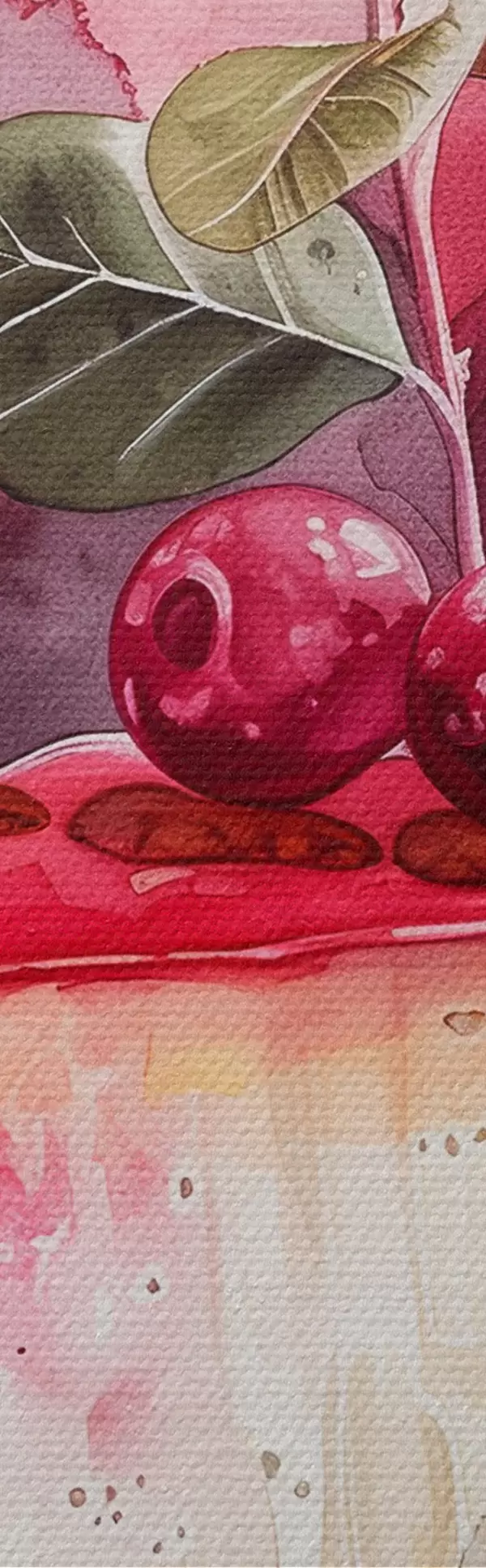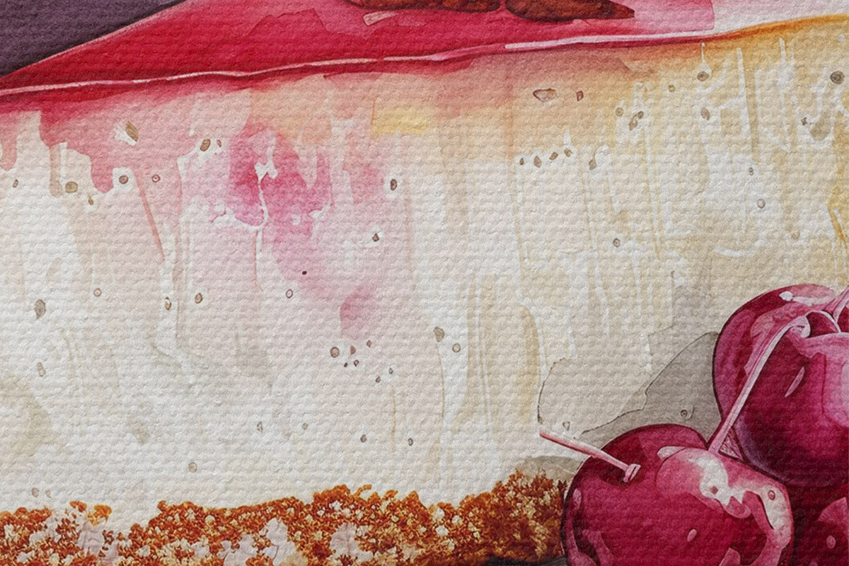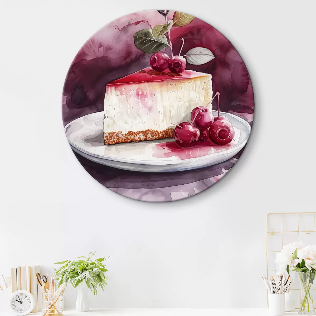 Кругла картина Акварель Чізкейк з вишнями, елегантний харчовий мистецтво, червоний і фіолетовий кольори Nr r39700