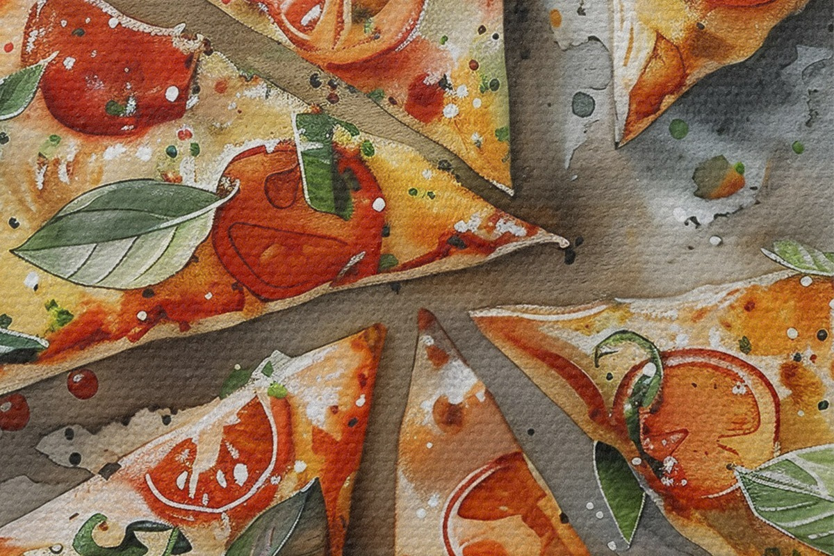 Кругла картина Смачна італійська піца, акварель їжі мистецтво, Маргарита, помідори Nr r39703
