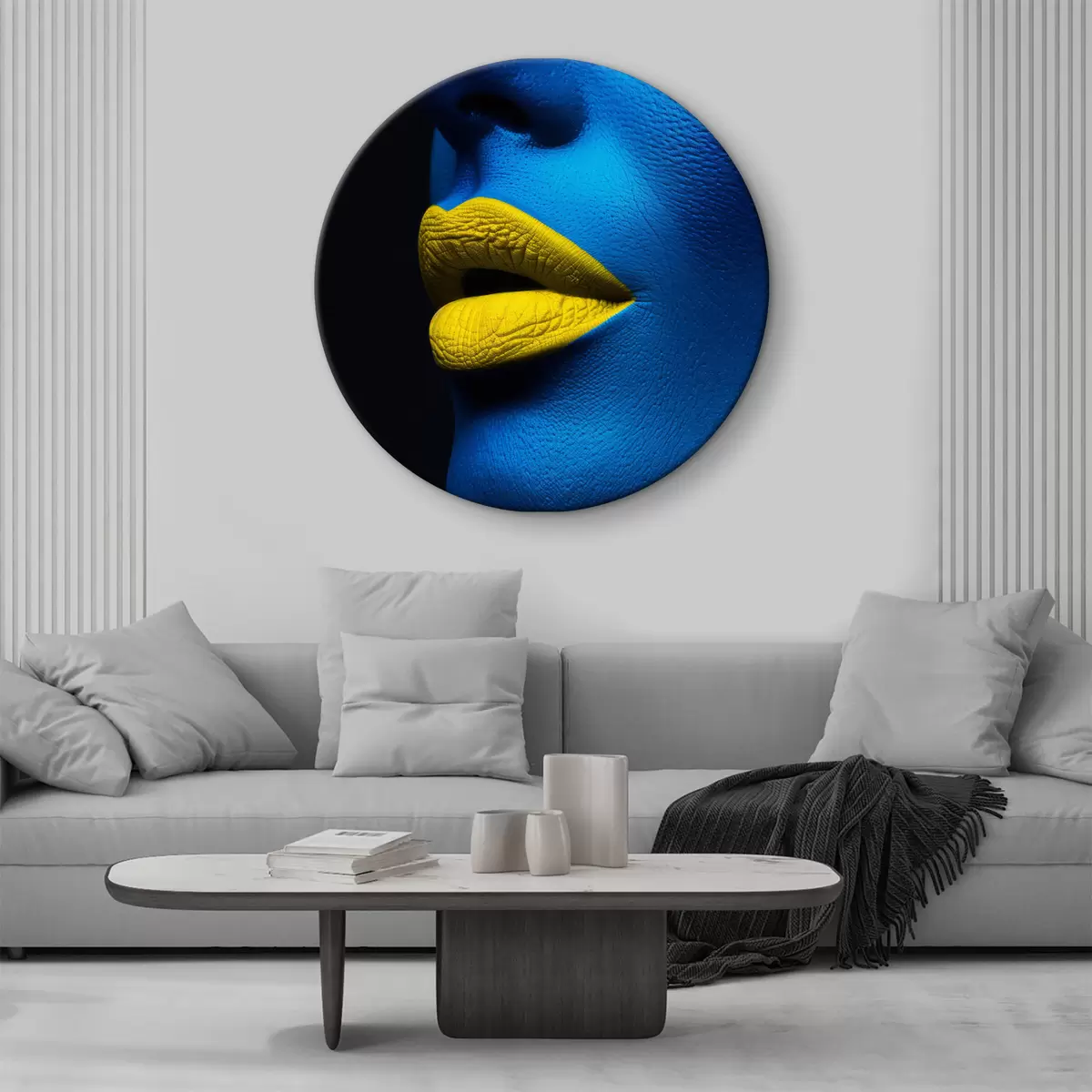 Кругла картина Синє обличчя з жовтими губами Nr r39733
