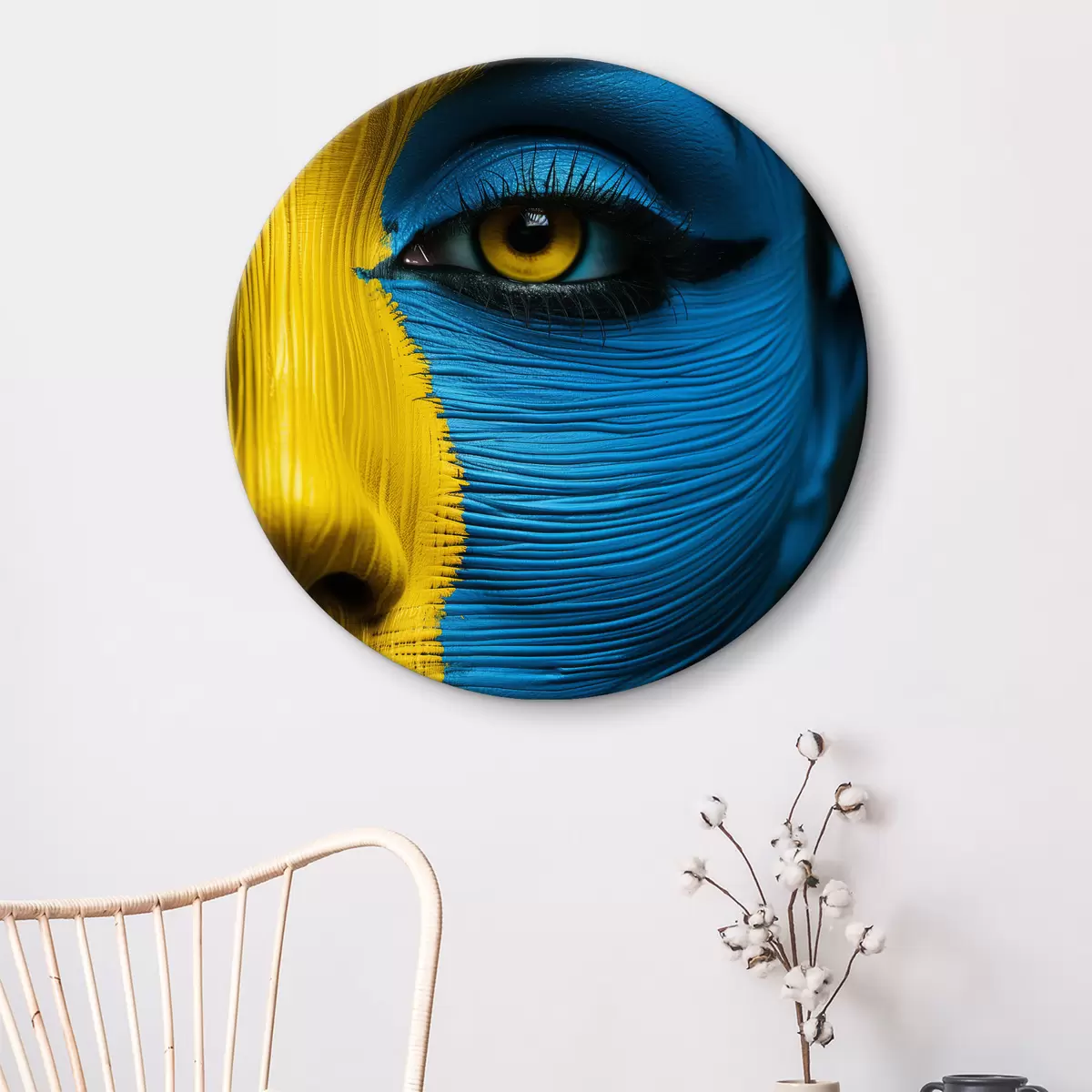 Кругла картина Яскравий жовто-блакитний мінімалізм обличчя красивої дівчини r39734