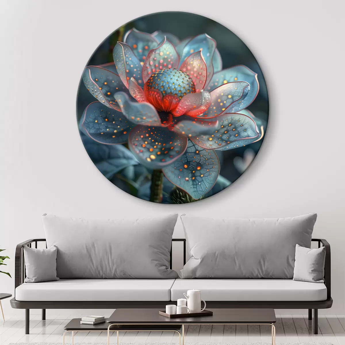 Кругла картина Чудова велика фрактальна квітка синьо-червоного кольору Nr r39742