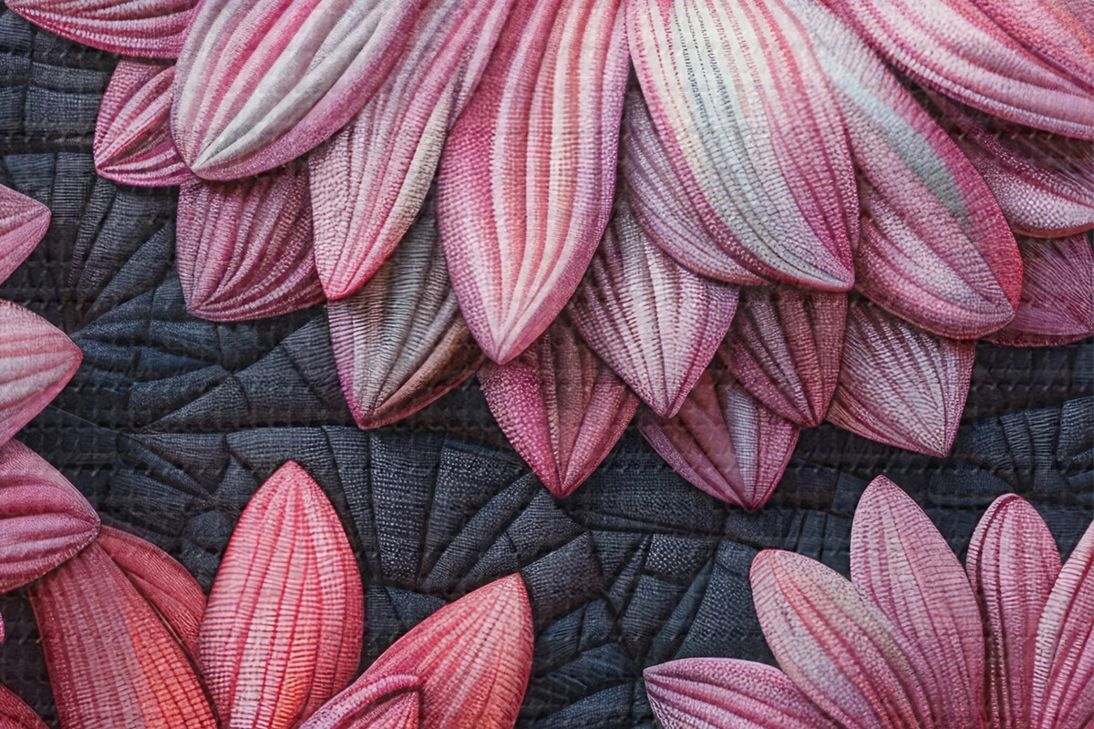 Кругла картина 3D вишивка вовняною пряжею з рожевими герберами на стьобаному фоні r39747