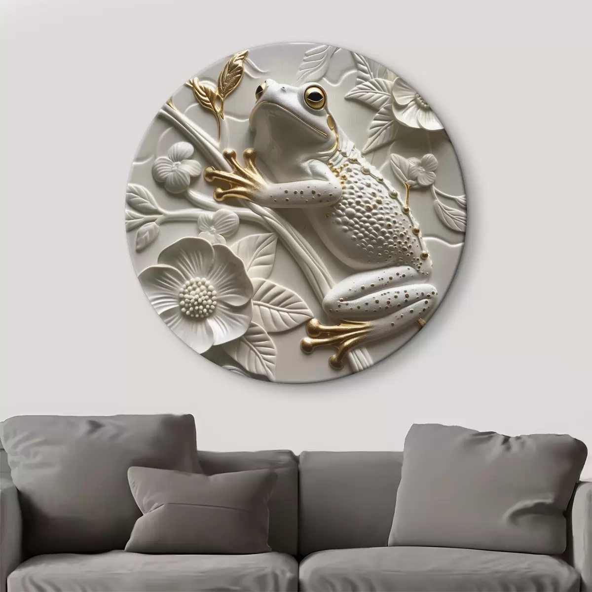 Кругла картина Скульптура з жабою на дереві та квітковим візерунком Nr r39750