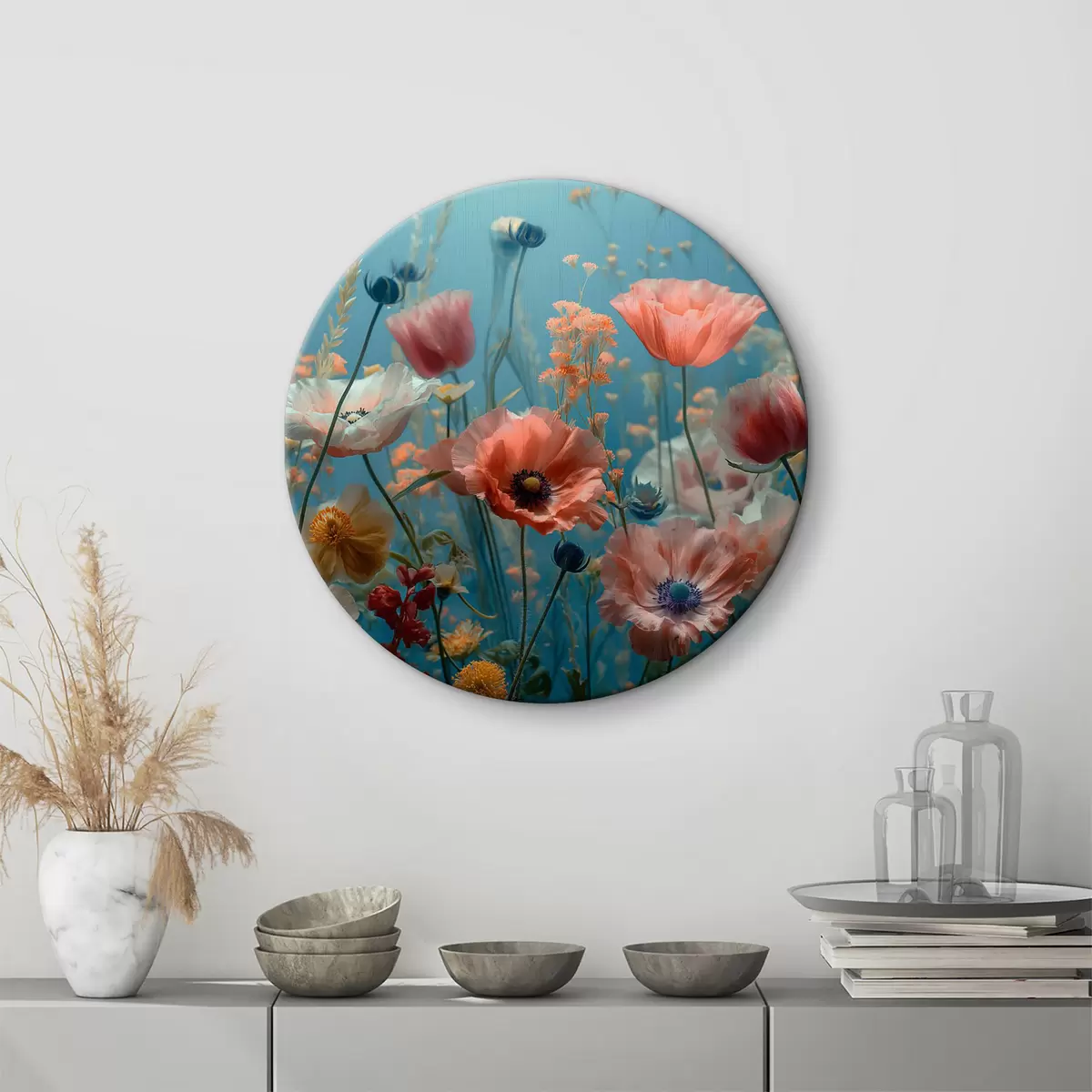 Кругла картина Польові квіти, зокрема маки, тюльпани тощо Nr r39752