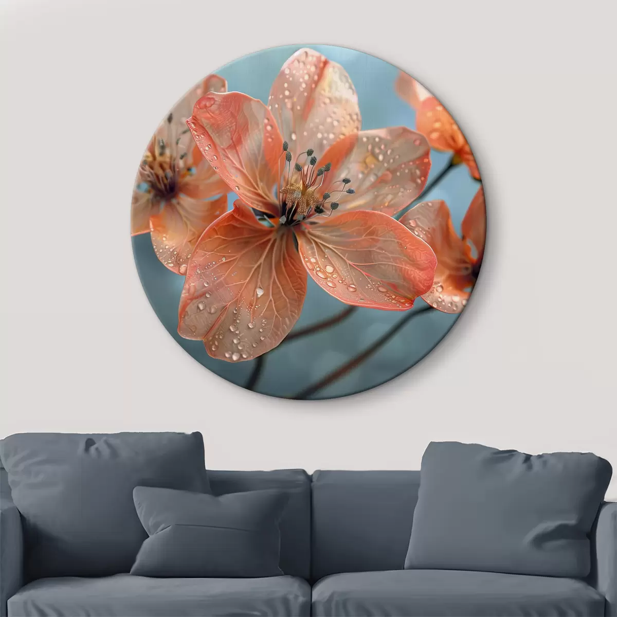 Кругла картина Красива квітка лілії з краплями роси на фоні Боке r39755