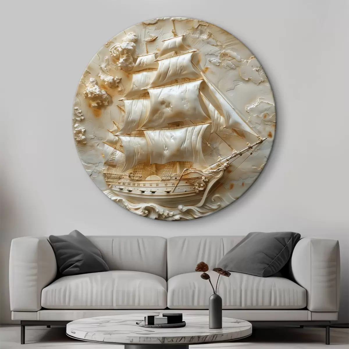 Кругла картина Барельєф корабля, що пливе по морю Nr r39757