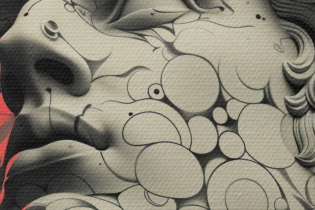 Кругла картина Чорно-біла лінійна ілюстрація голови грецького бога Аполлона в стилі поп-арт Nr r39763