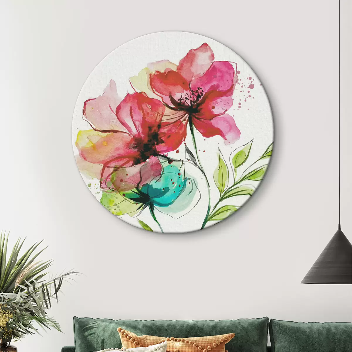 Кругла картина Ніжні акварельні квіти r39767