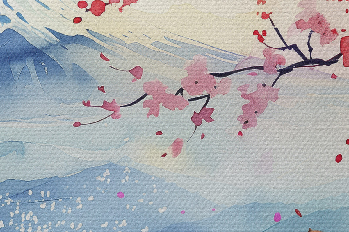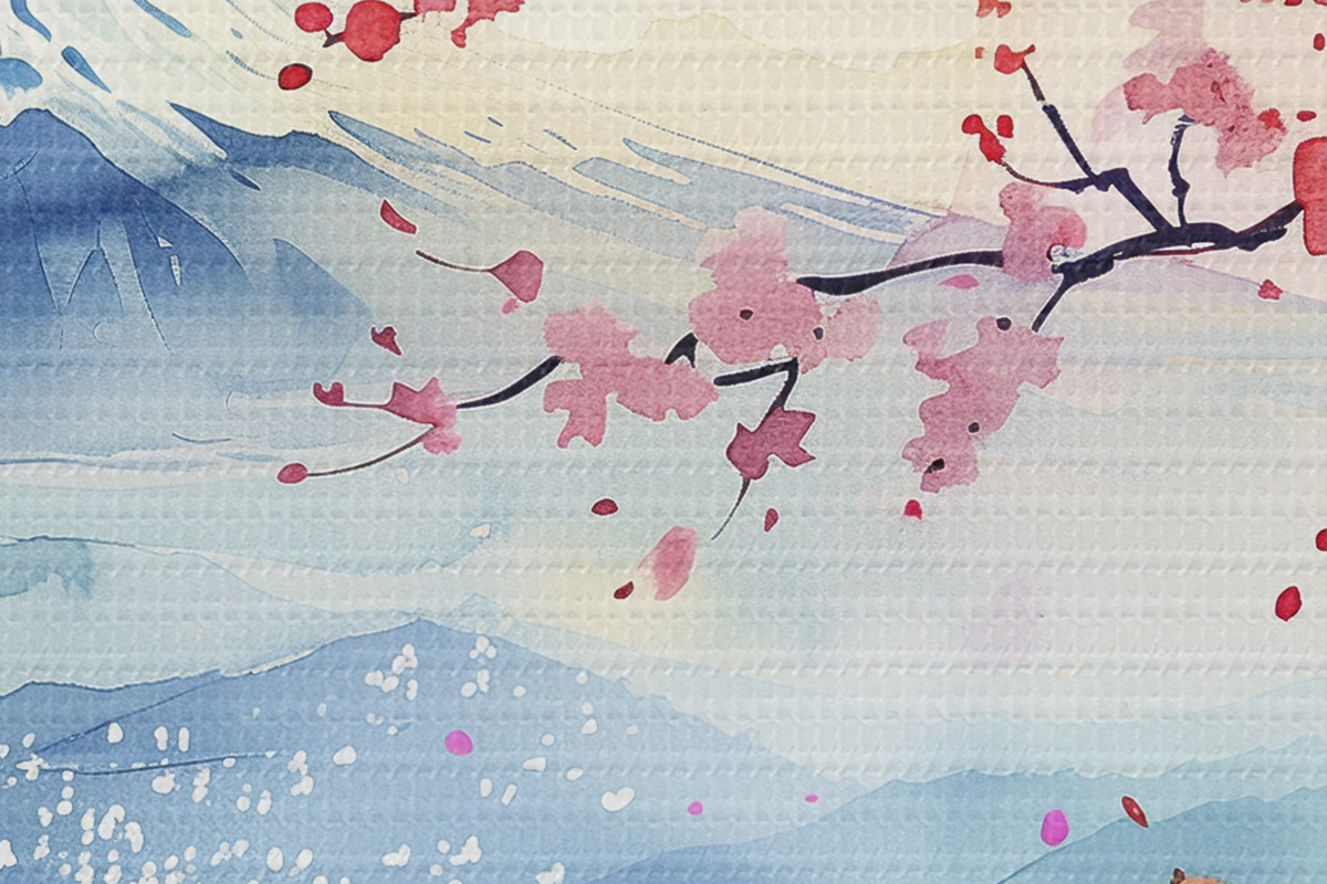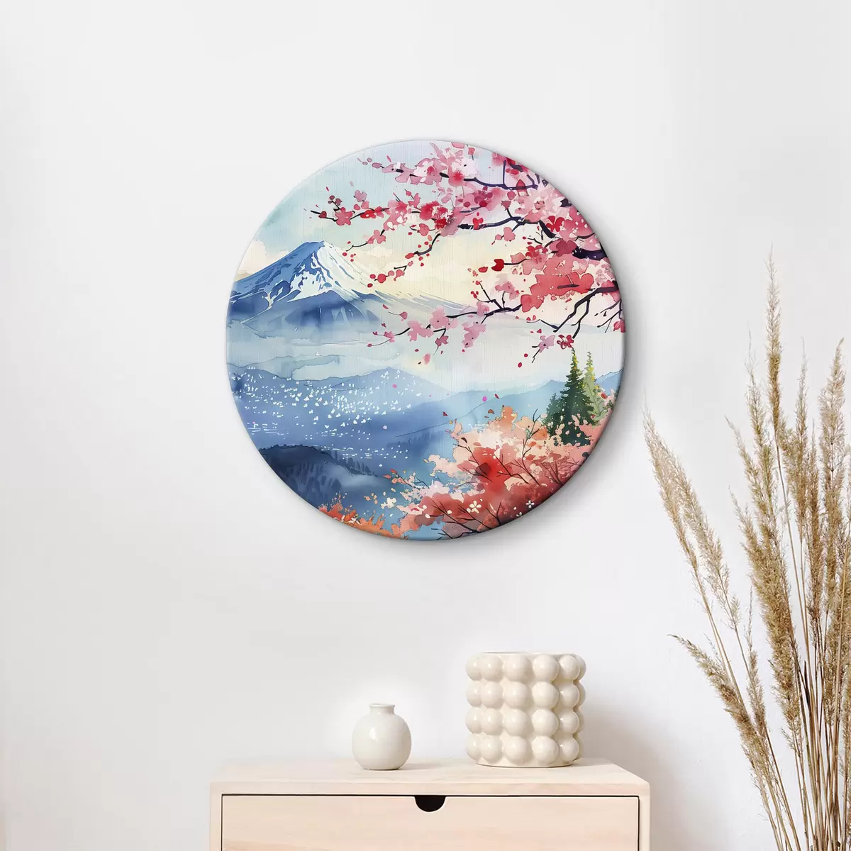 Кругла картина Краєвид гори Фудзі, східна природа, вишневі дерева, захід сонця r39775