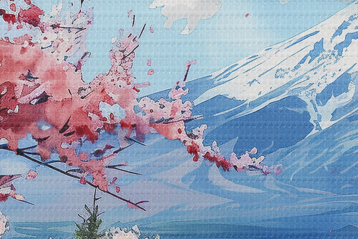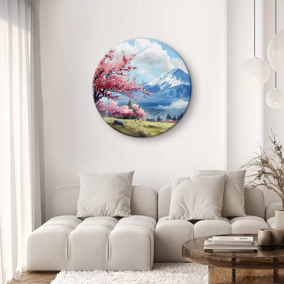 Кругла картина Краєвид гори Фудзі, весняна природа, вишневі дерева, японський Nr r39777