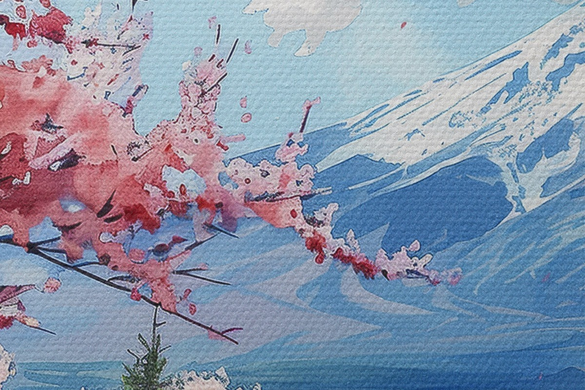 Кругла картина Краєвид гори Фудзі, весняна природа, вишневі дерева, японський r39777