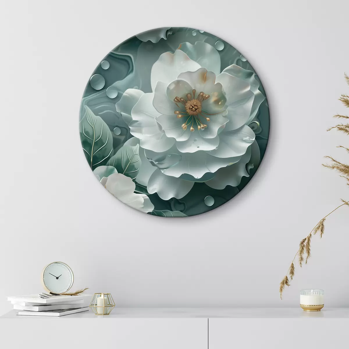 Кругла картина Великі квіти і краплі роси Nr r39792