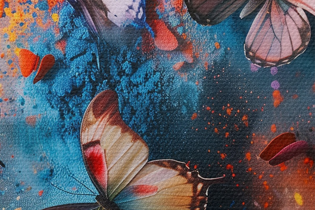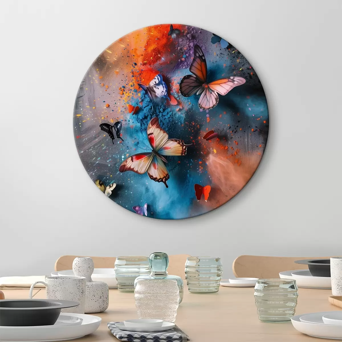 Кругла картина Метелики на фоні бризок фарби Nr r39803