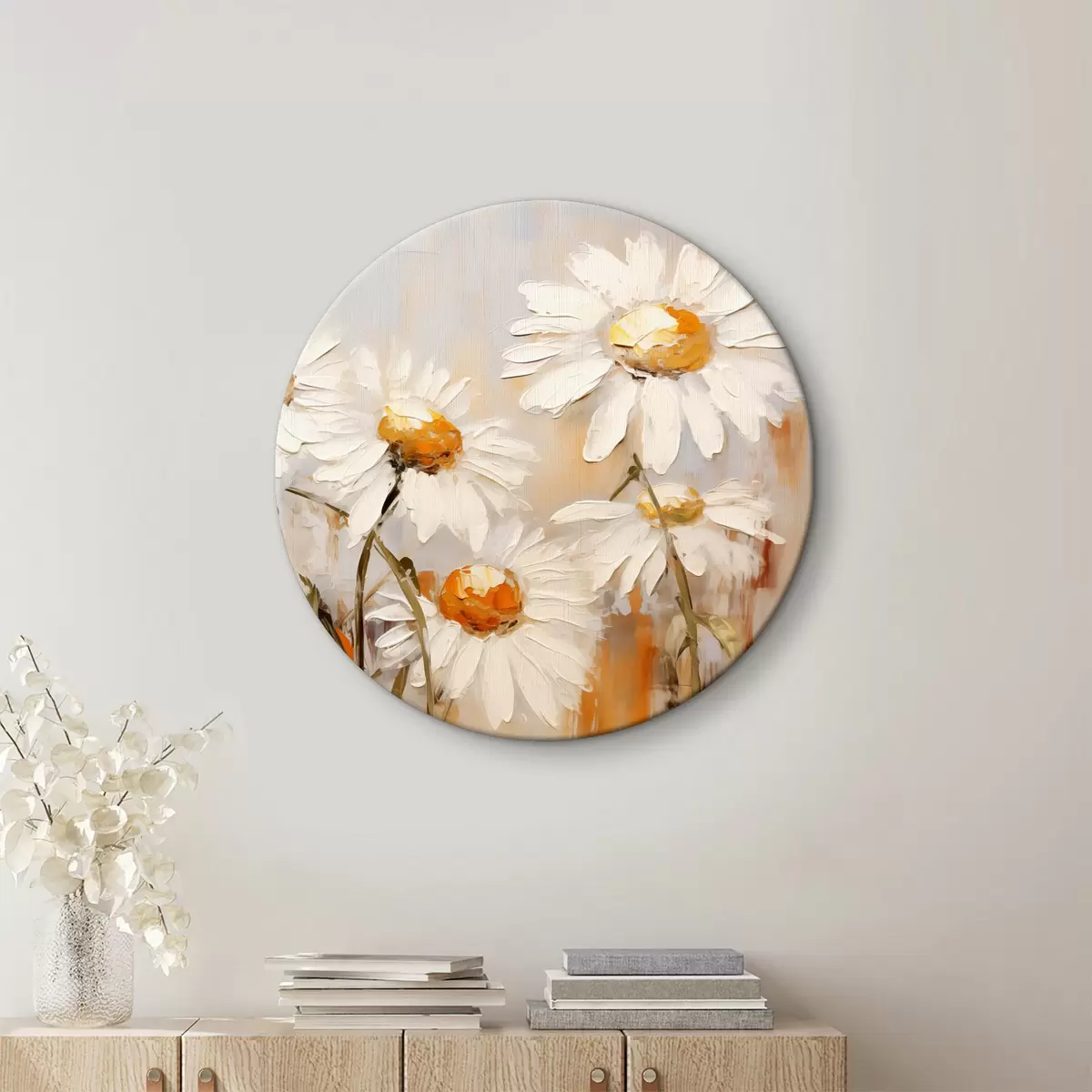 Кругла картина Великі білі ромашки картина маслом Nr r39820