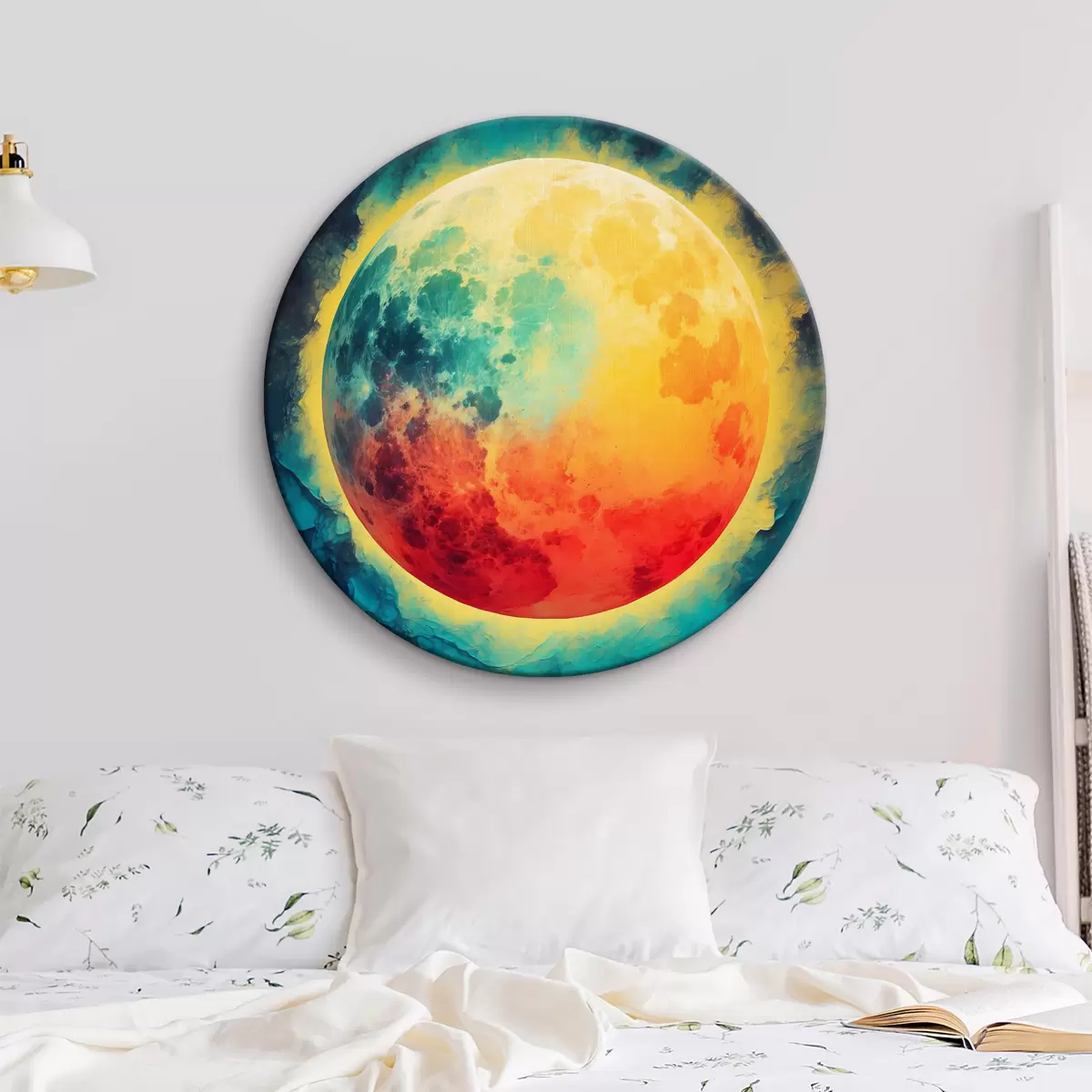 Кругла картина Червоно синій місяць на абстрактним фоном r39844