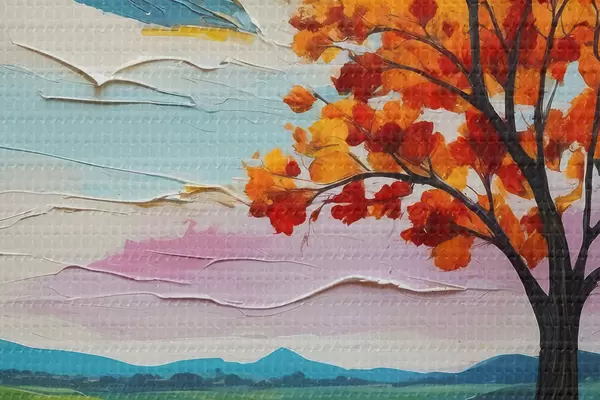 Кругла картина Дерево на тлі поля та абстрактного неба, олійного живопису Nr r39851