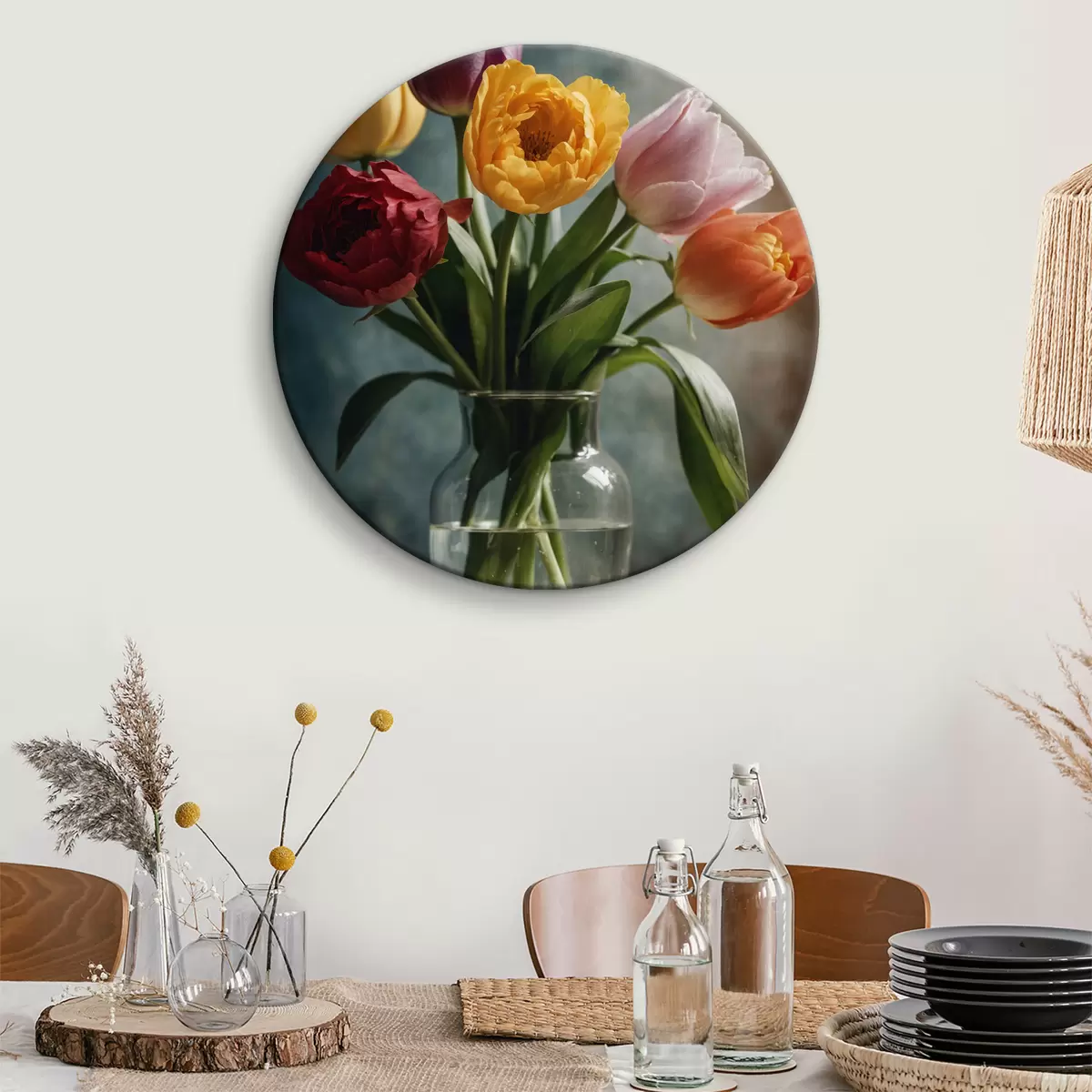 Кругла картина Букет квітів у прозорій вазі Nr r39862
