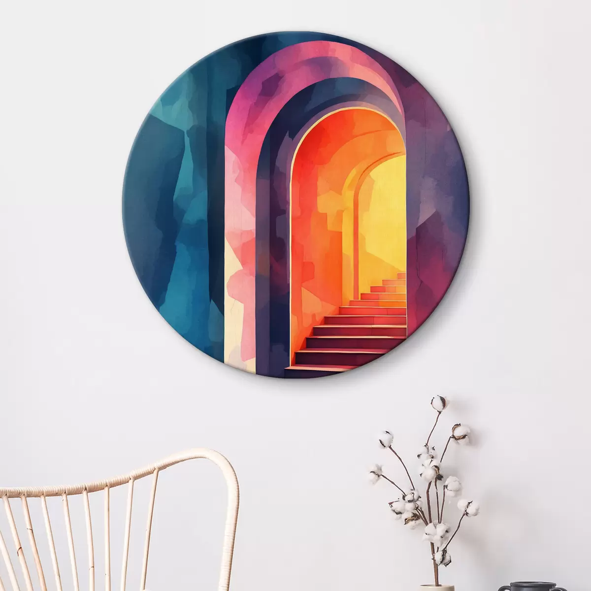 Кругла картина Багаторівневий вхід аквареллю r39863