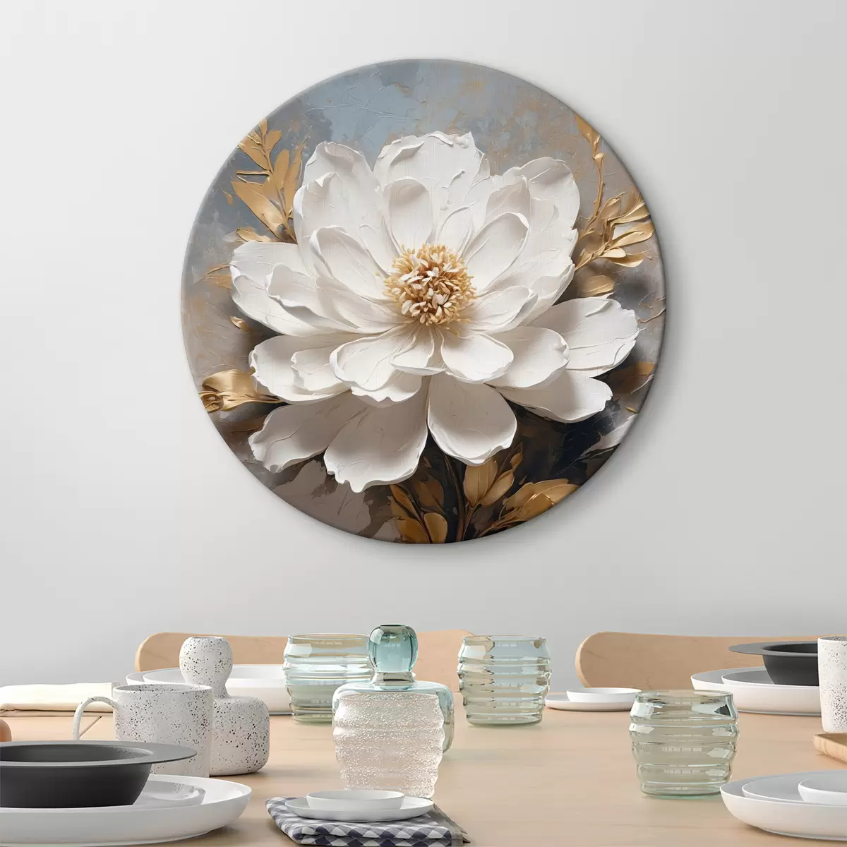 Кругла картина Біла квітка зі стеблами на абстрактному тлі Nr r39865