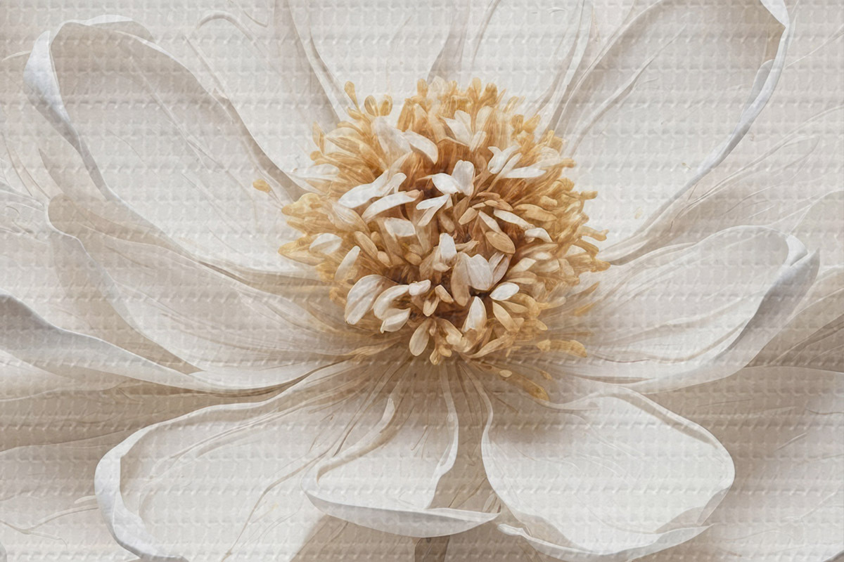 Кругла картина Біла квітка зі стеблами на абстрактному тлі r39865