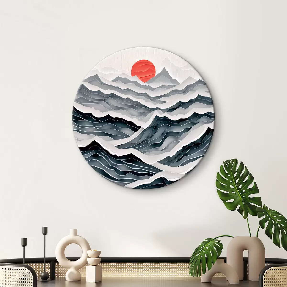 Кругла картина Анотація хвилі з червоним сонцем r39895