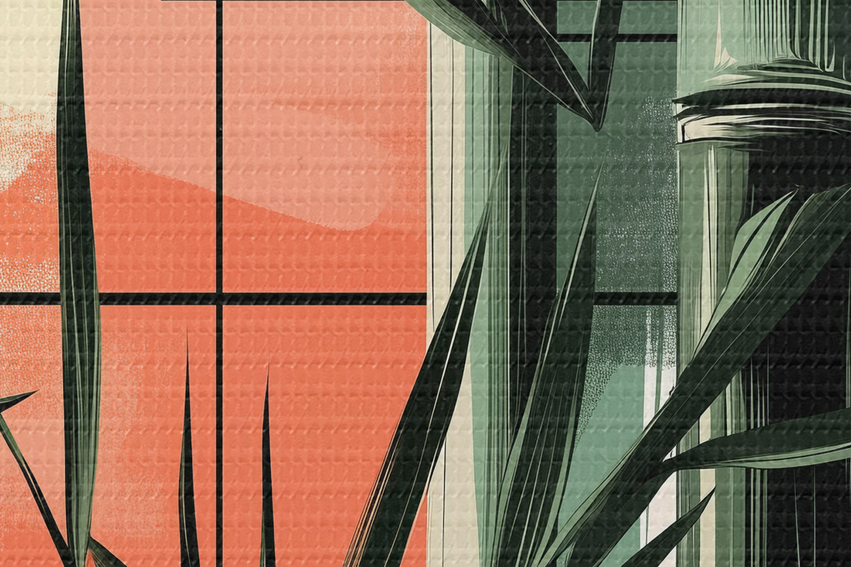 Кругла картина Анотація з бамбуком і сонцем Nr r39898