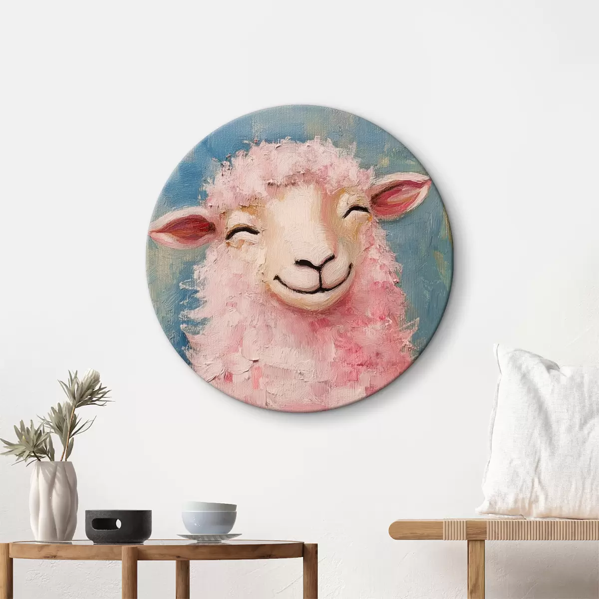 Кругла картина Веселий баран з рожевою вовною Nr r39911
