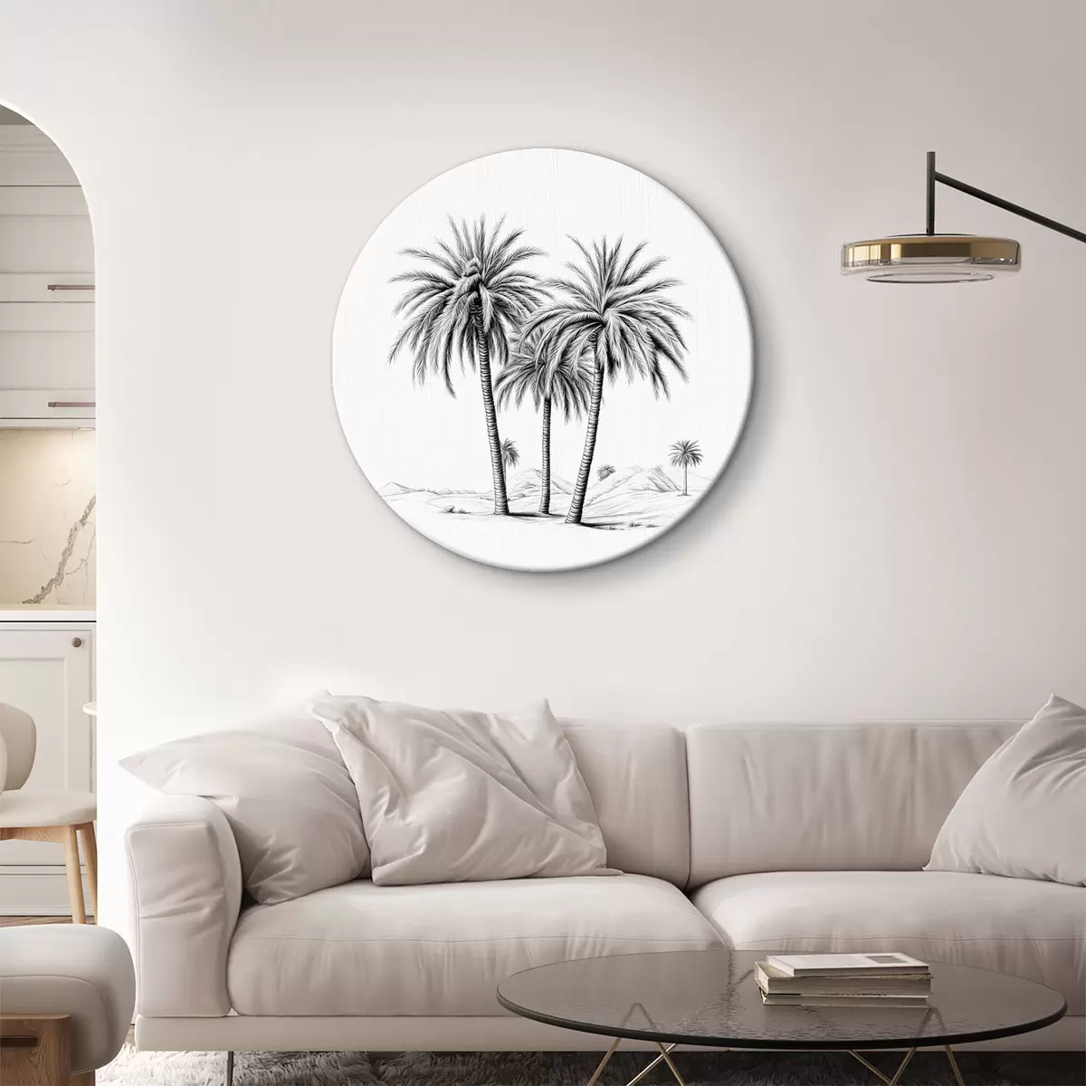Кругла картина Пальми, монохром, мінімалізм Nr r39929