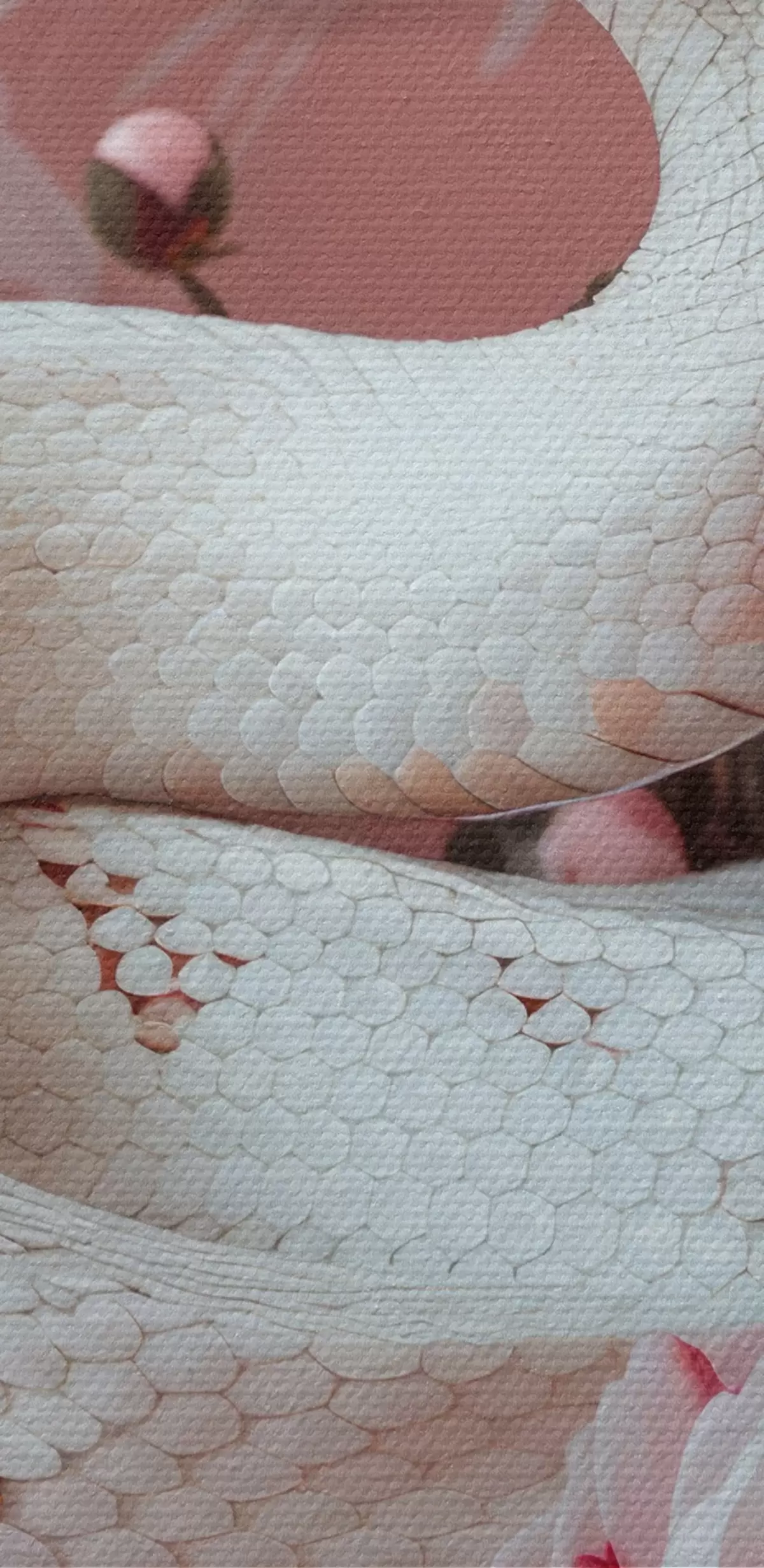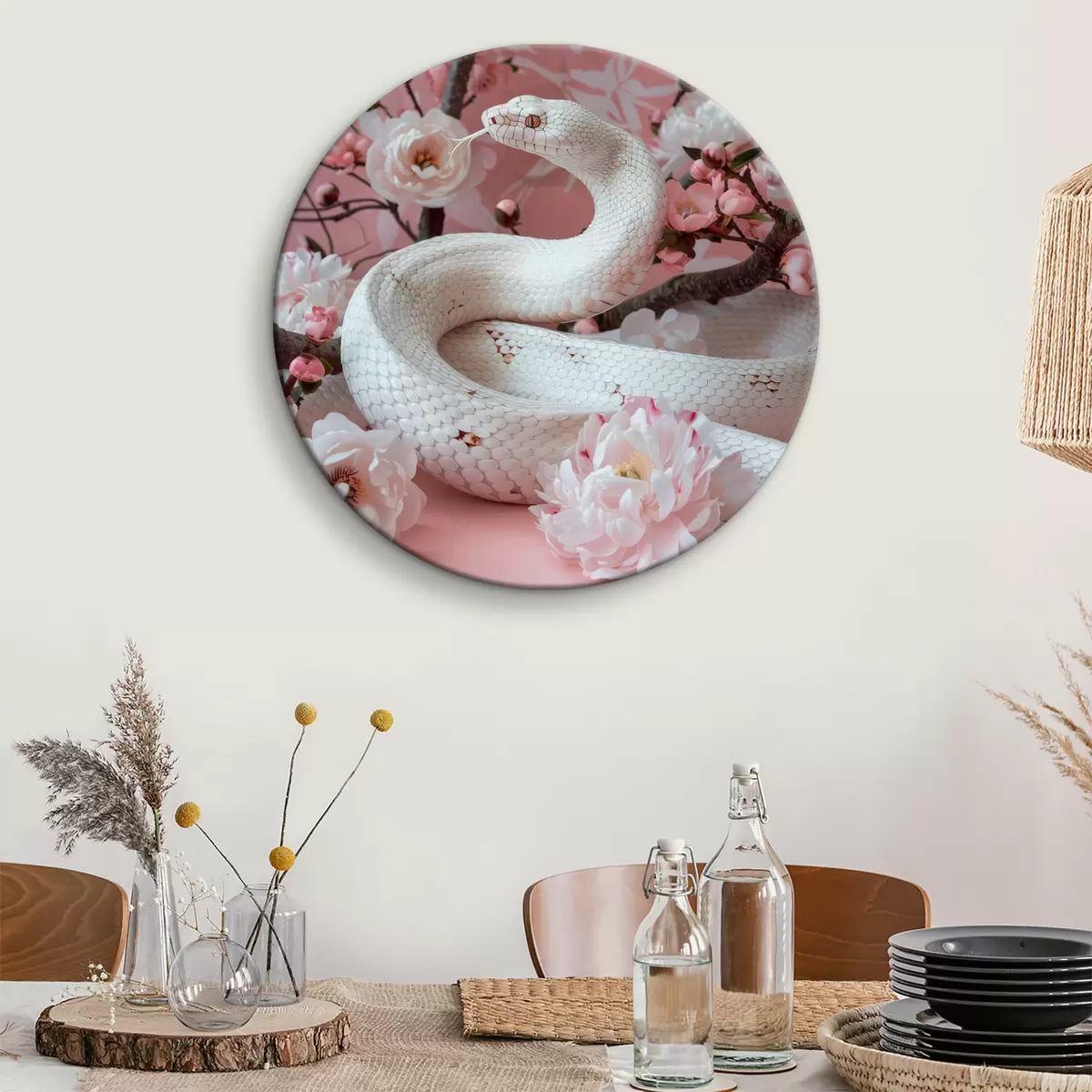 Кругла картина Біла змія і рожеві квіти Nr r39941